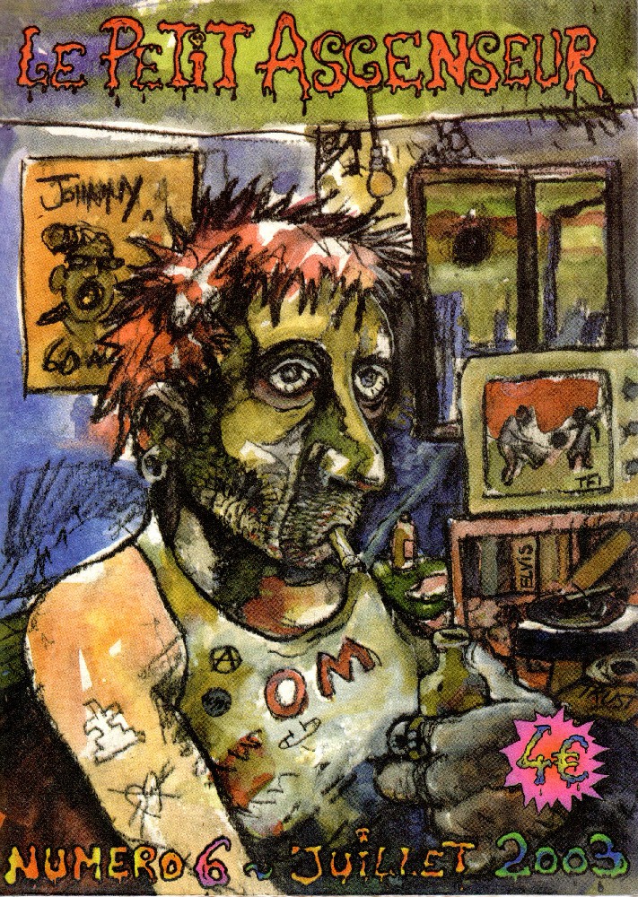 A5 → Photocopie couleur → Photocopie NB ↪ FR Parution en 2003Le Petit Ascenseur n°6 Numerisation : Non Cover Ludovic Adam - En recherche PLUS MOINS