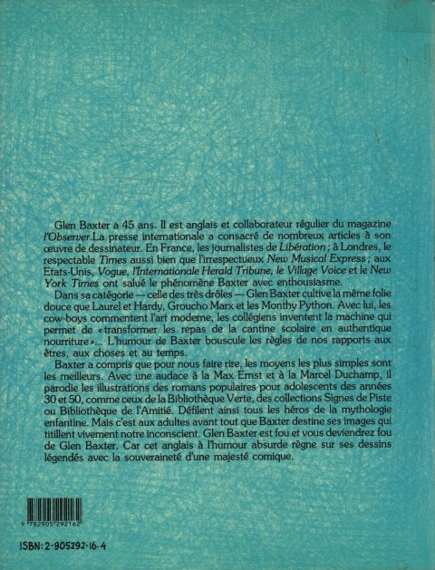 A4 23 x 29.7 cm 104 pages → Offset ↪ FR Parution en 1988L'heure du Thé par : Baxter (Glen) Numerisation : Non Edition Hobëke - En recherche PLUS MOINS