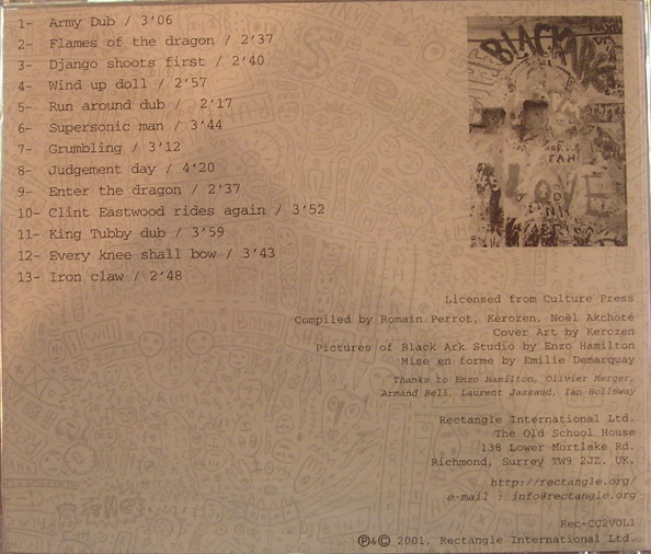 13 x 13 cm 2 pages → Offset ↪ FR Parution en 2001Lee Perry – The Compiler Vol. 1 par : Kerozen (Eugène) Numerisation : Oui CD - Edition Rectangle - En ligne sur Discogs PLUS MOINS