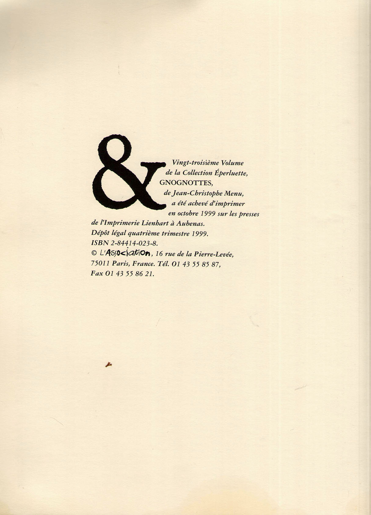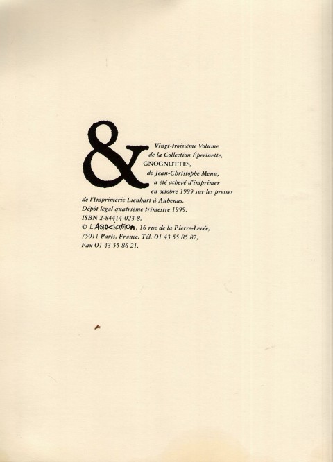 Parution en octobre 1999