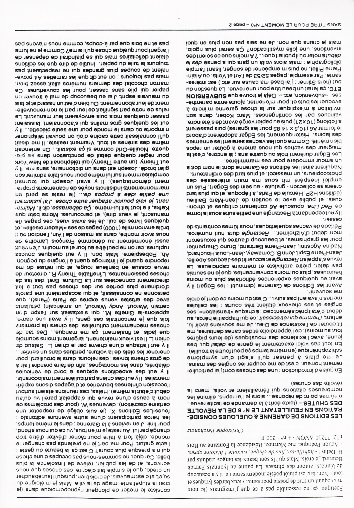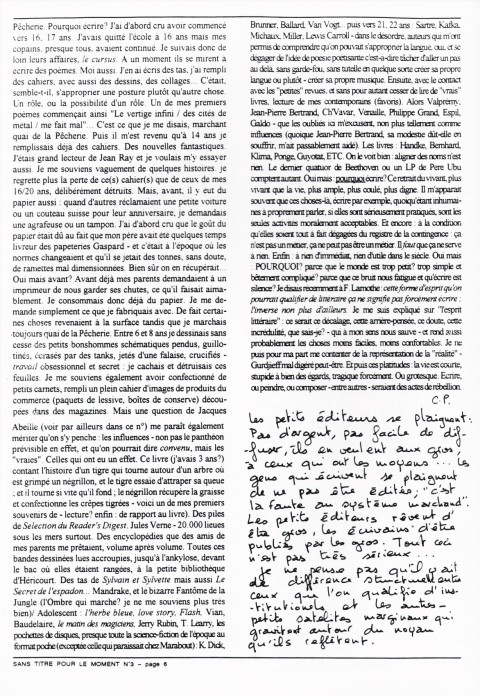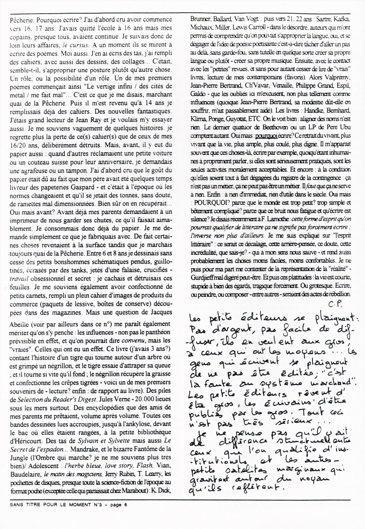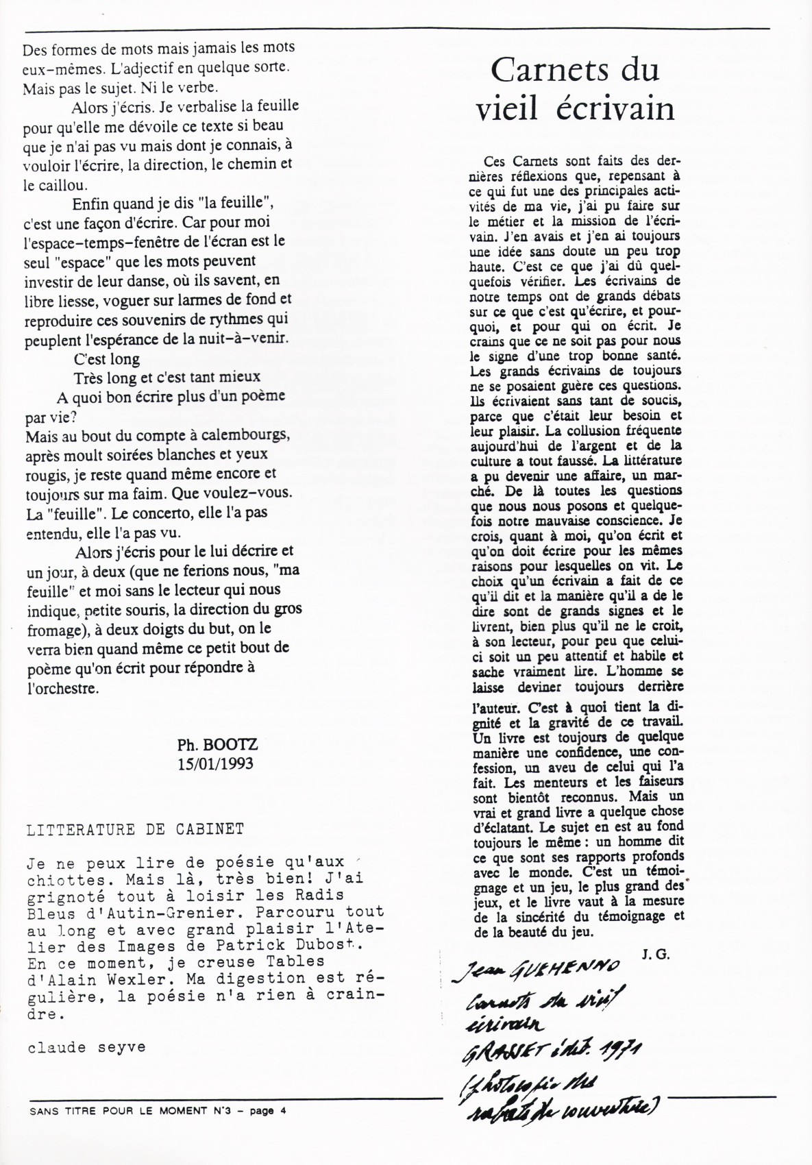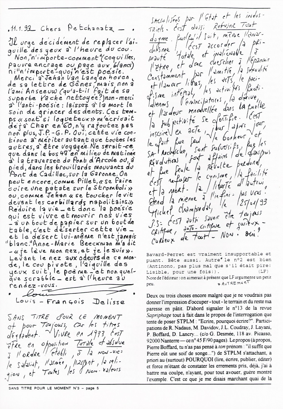 A4 8 pages → Photocopie NB ↪ FR ↪ 69 ↪ Lyon Parution en janvier 1993Sans Titre Pour Le Moment n°3 par : Petchanatz (Christophe) Numerisation : Oui (150 dpi) Collection privée PLUS MOINS