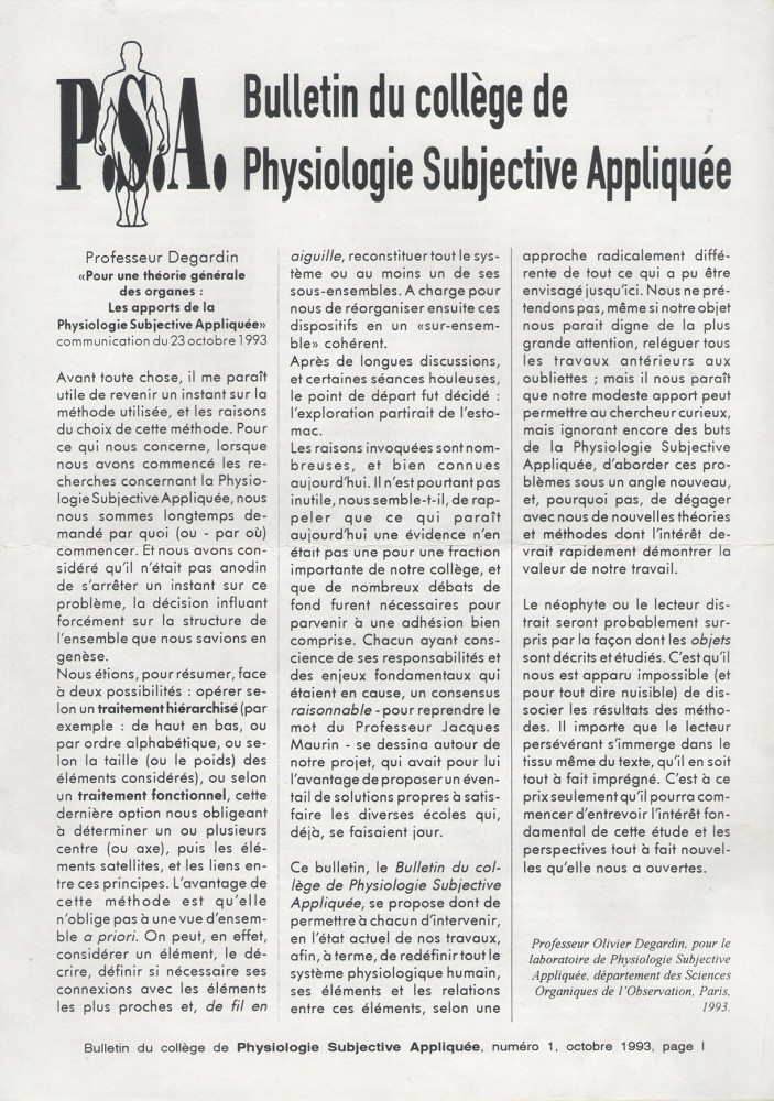 Bulletin De Physiologie Subjective Appliquée n°1