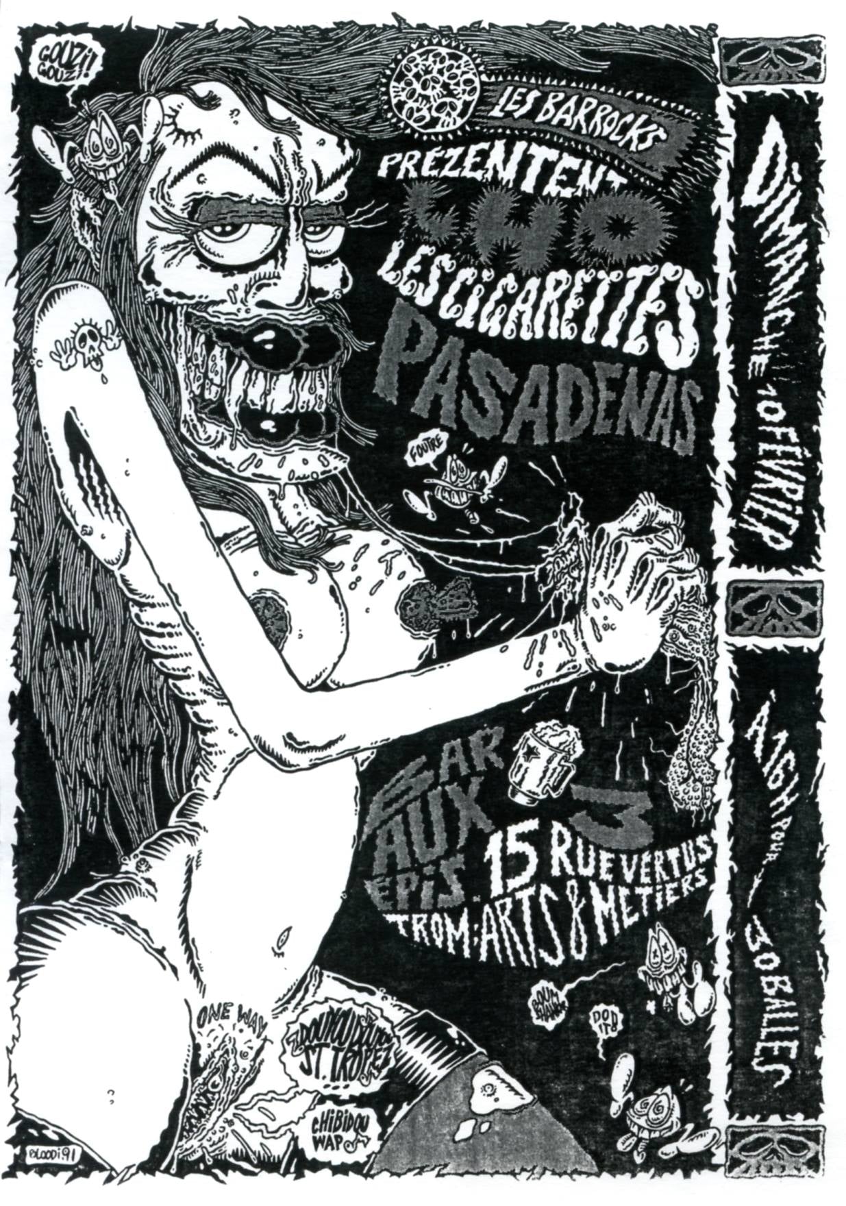 1 pages → Photocopie NB ↪ FR ↪ Paris Parution en fevrier 1991Barrocks Bar Aux Epis chez : Barrocks (Les) Numerisation : Oui Visuel Bloodi En ligne sur Facebook PLUS MOINS