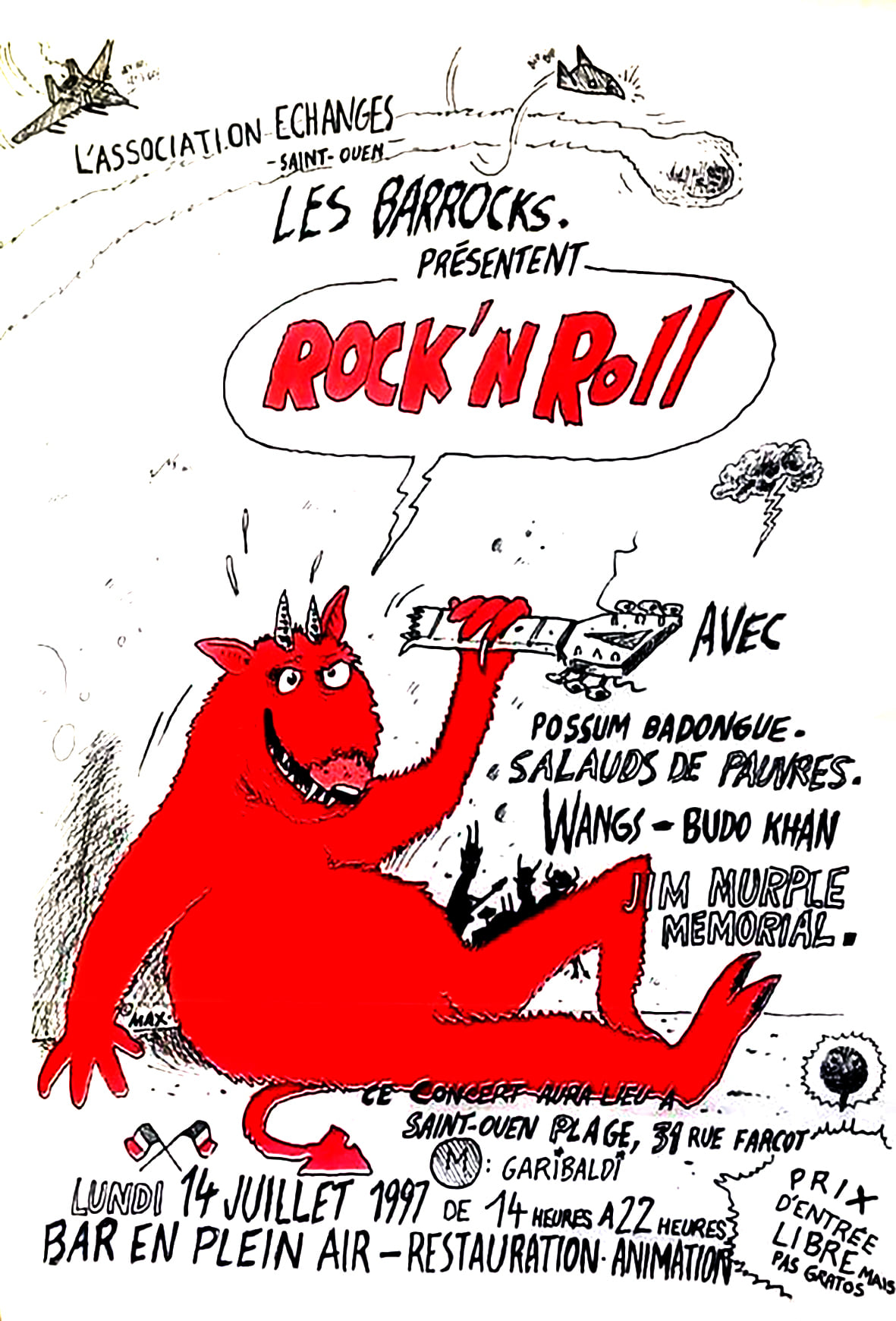 1 pages → Sérigraphie ↪ FR ↪ Paris Parution en juillet 1997Barrocks Plein Air par : Max chez : Barrocks (Les) Numerisation : Oui En ligne sur Facebook PLUS MOINS
