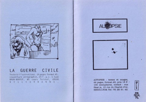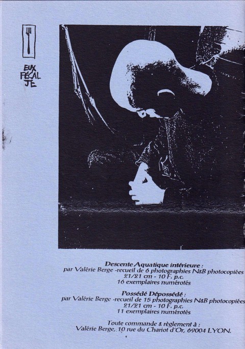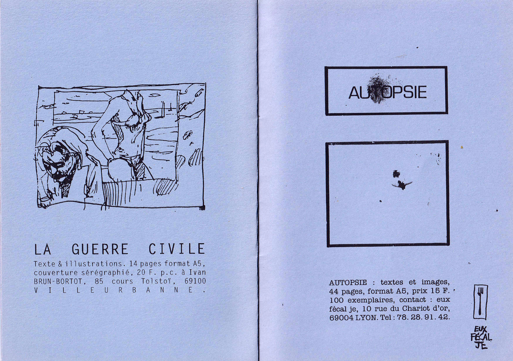 A5 8 pages → Photocopie NB ↪ FR ↪ 69 ↪ Lyon Parution en novembre 1993Catalogue n°4 chez : Eux Fécal Je Numerisation : Oui (300 dpi) Collection privée PLUS MOINS
