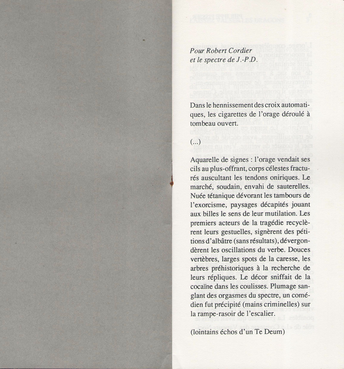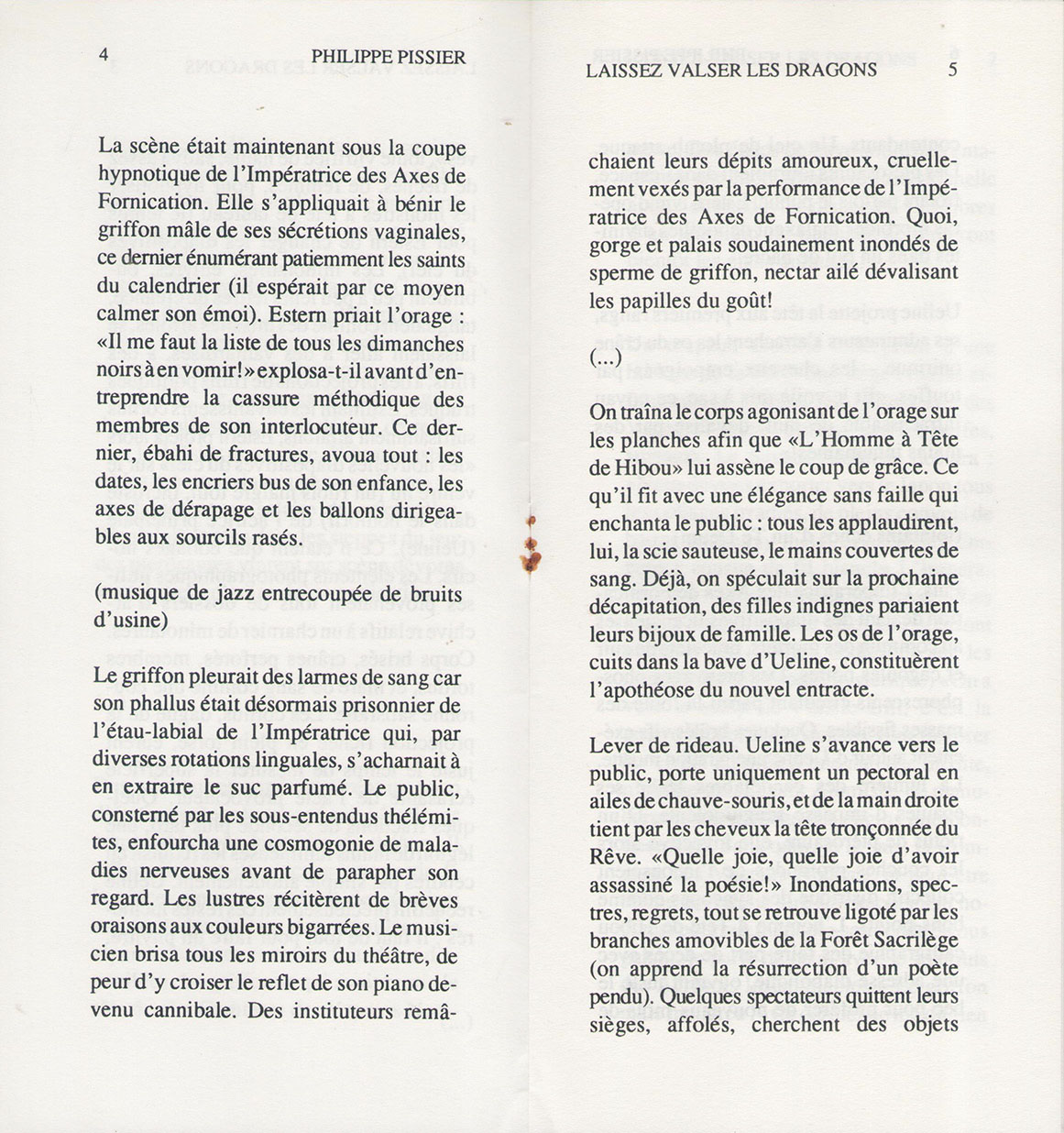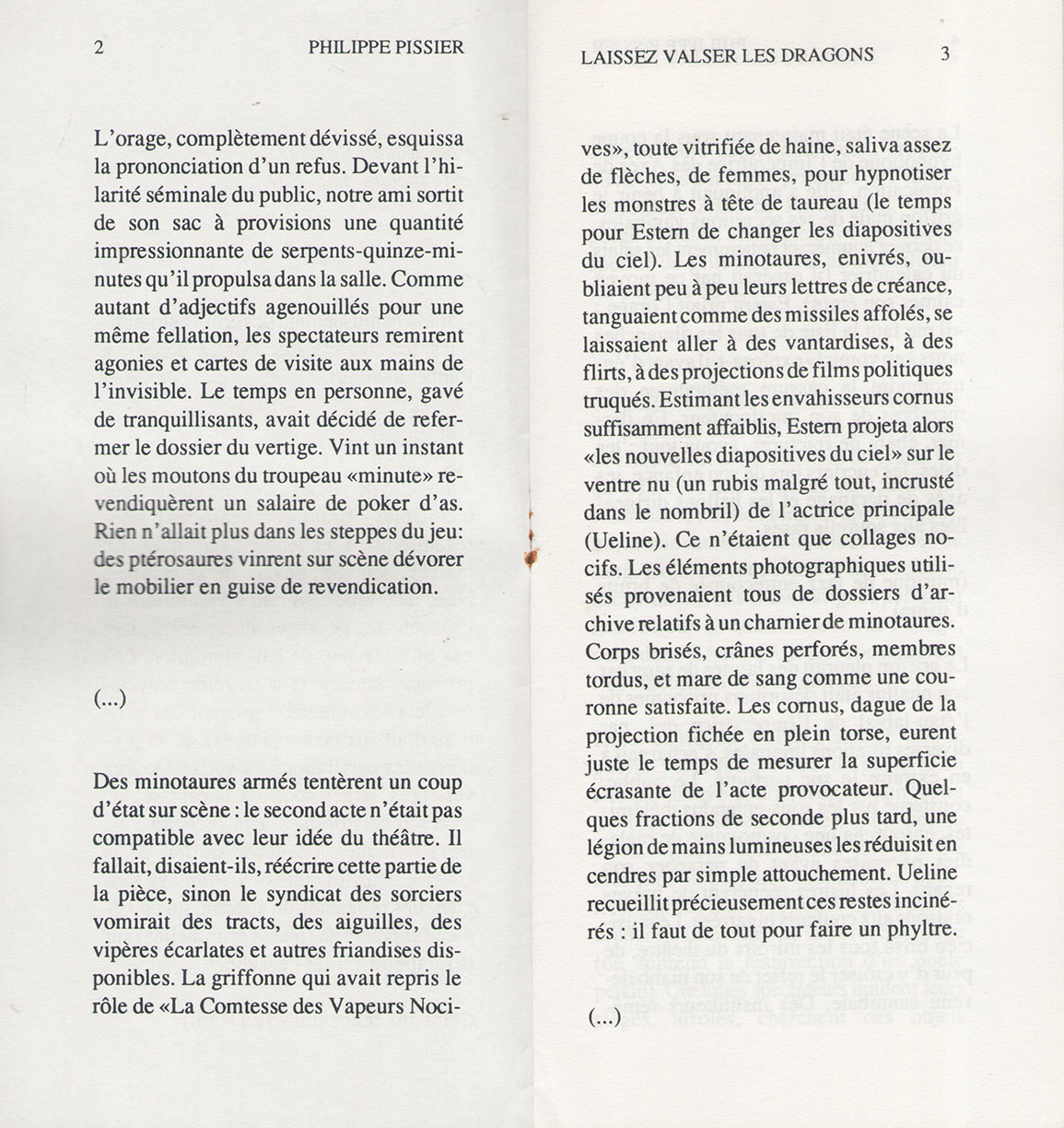 10 x 21 cm 16 pages → Photocopie NB ↪ FR ↪ 69 ↪ Lyon Parution en juin 1990Laissez Valser Les Dragons (Philippe Pissier) chez : Editions De Garenne Numerisation : Oui (300 dpi) Collection privée PLUS MOINS