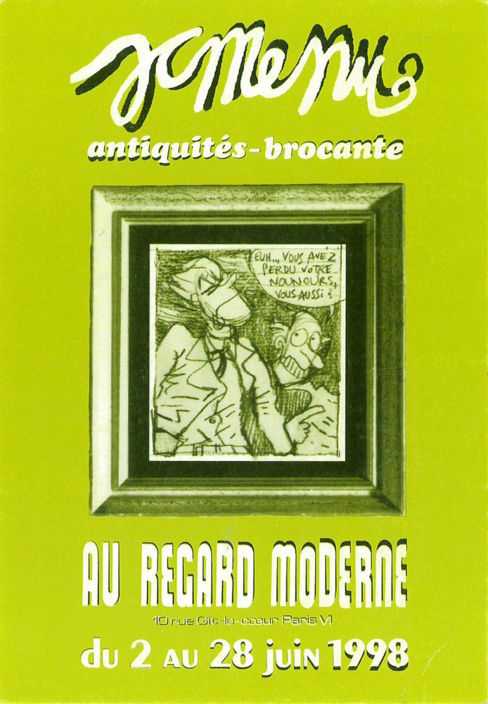 A6 1 pages → Offset ↪ FR ↪ Paris Parution en juin 1998Jean Christophe Menu par : Menu (Jean Christophe) chez : Un Regard Moderne Numerisation : Oui (300 dpi) Du 2 au 28 juin - Collection privée PLUS MOINS