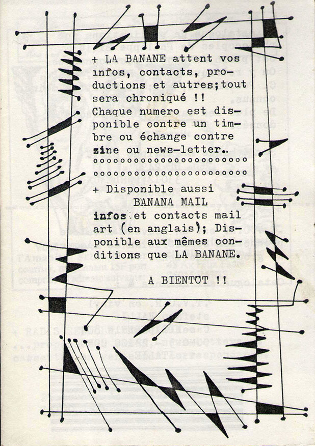 A6 8 pages → Photocopie NB → Tampon ↪ FR ↪ 28 ↪ Mainvilliers Parution en 1989La Banane n°2 Numerisation : Oui (300 dpi) Collection privée PLUS MOINS