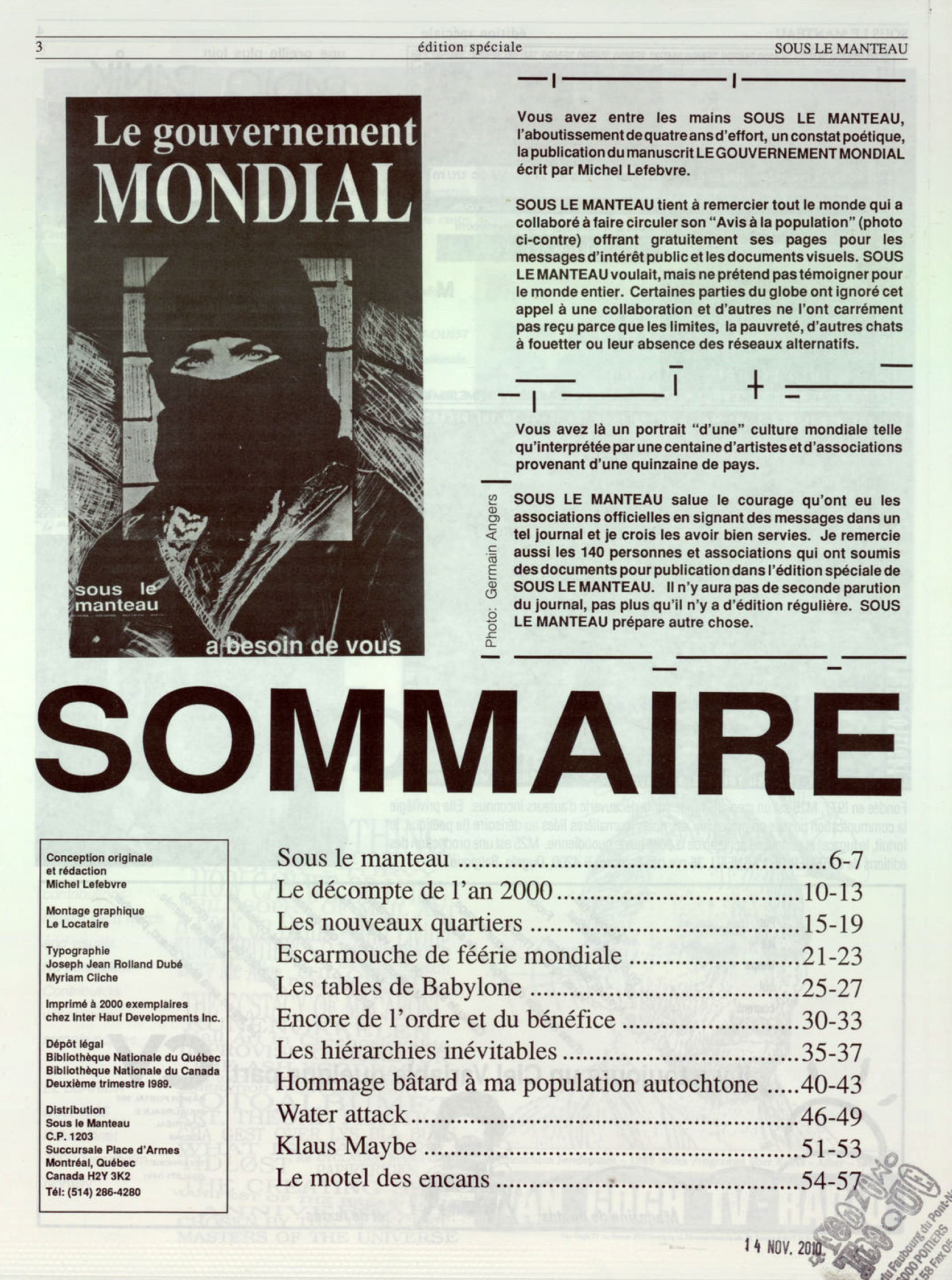 Parution en avril 1989
