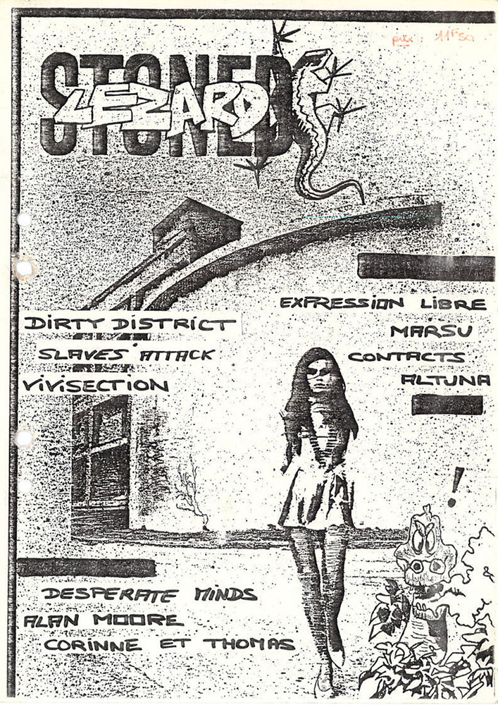 A4 58 pages → Photocopie NB ↪ FR ↪ Paris Parution en juin 1989Stoned Lezard n°1 Numerisation : Oui (150 dpi) En ligne sur Fanzinothèque.fr PLUS MOINS