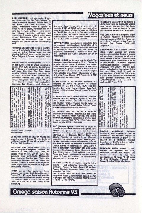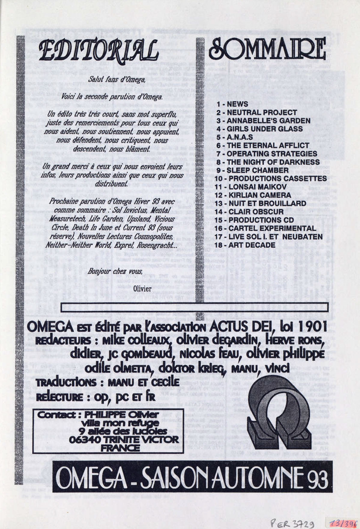 A4 50 pages → Photocopie NB ↪ FR ↪ 06 ↪ Nice Parution en octobre 1993Omega n°2 Numerisation : Oui (150 dpi) En ligne sur Fanzinothèque.fr PLUS MOINS