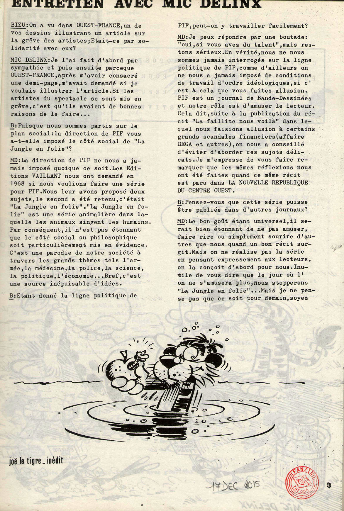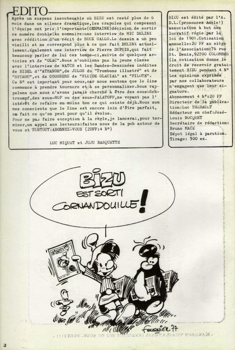 A4 44 pages → Offset ↪ FR ↪ 92 ↪ Colombes Parution en octobre 1977Bizu n°5-6 Numerisation : Oui (300 dpi) Collection Fanzinothèque de Poitiers PLUS MOINS
