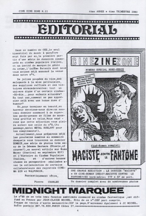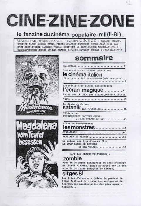 A4 70 pages → Offset ↪ FR ↪ 94 ↪ Saint Maur des Fossés Parution en octobre 1981Ciné Zine Zone n°11 - Les Monstres Numerisation : Oui (300 dpi) Collection Fanzinothèque de Poitiers PLUS MOINS