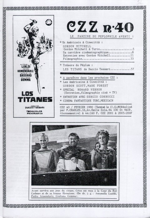 A4 80 pages → Offset ↪ FR ↪ 94 ↪ Saint Maur des Fossés Parution en 1990Ciné Zine Zone n°40 - Les Titans Numerisation : Oui En ligne sur Le Fanzinophile PLUS MOINS