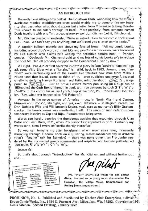 Comic → Offset ↪ US ↪ Milwaukee Parution en 1971Pro Junior n°1 Numerisation : Oui (150 dpi) Edition Kitchen Sink - Collection privée PLUS MOINS