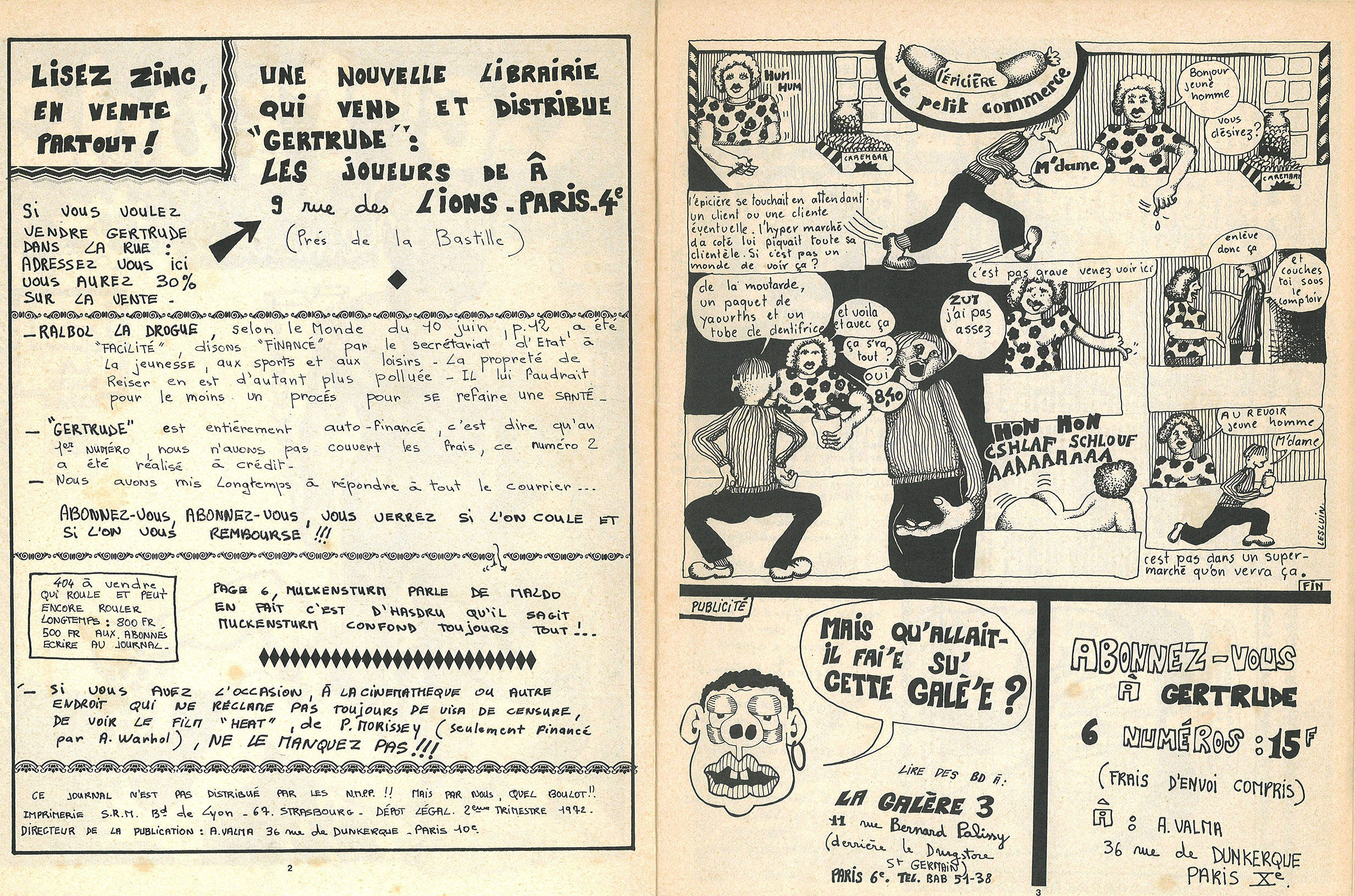20 pages → Offset ↪ FR ↪ Paris Parution en juin 1972Gertrude n°2 Numerisation : Oui (300 dpi) Collection Fanzinothèque de Poitiers PLUS MOINS