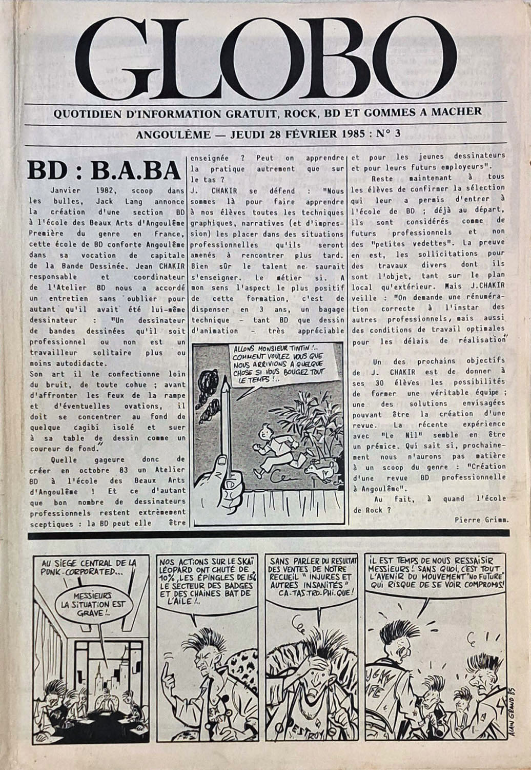 A4 8 pages → Offset ↪ FR ↪ 16 ↪ Angoulême Parution en fevrier 1985Globo n°3 Numerisation : Oui (150 dpi) Collection privée PLUS MOINS