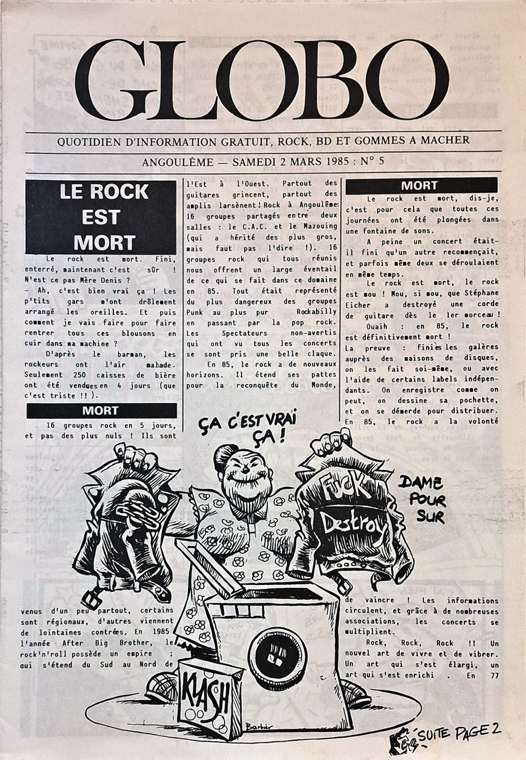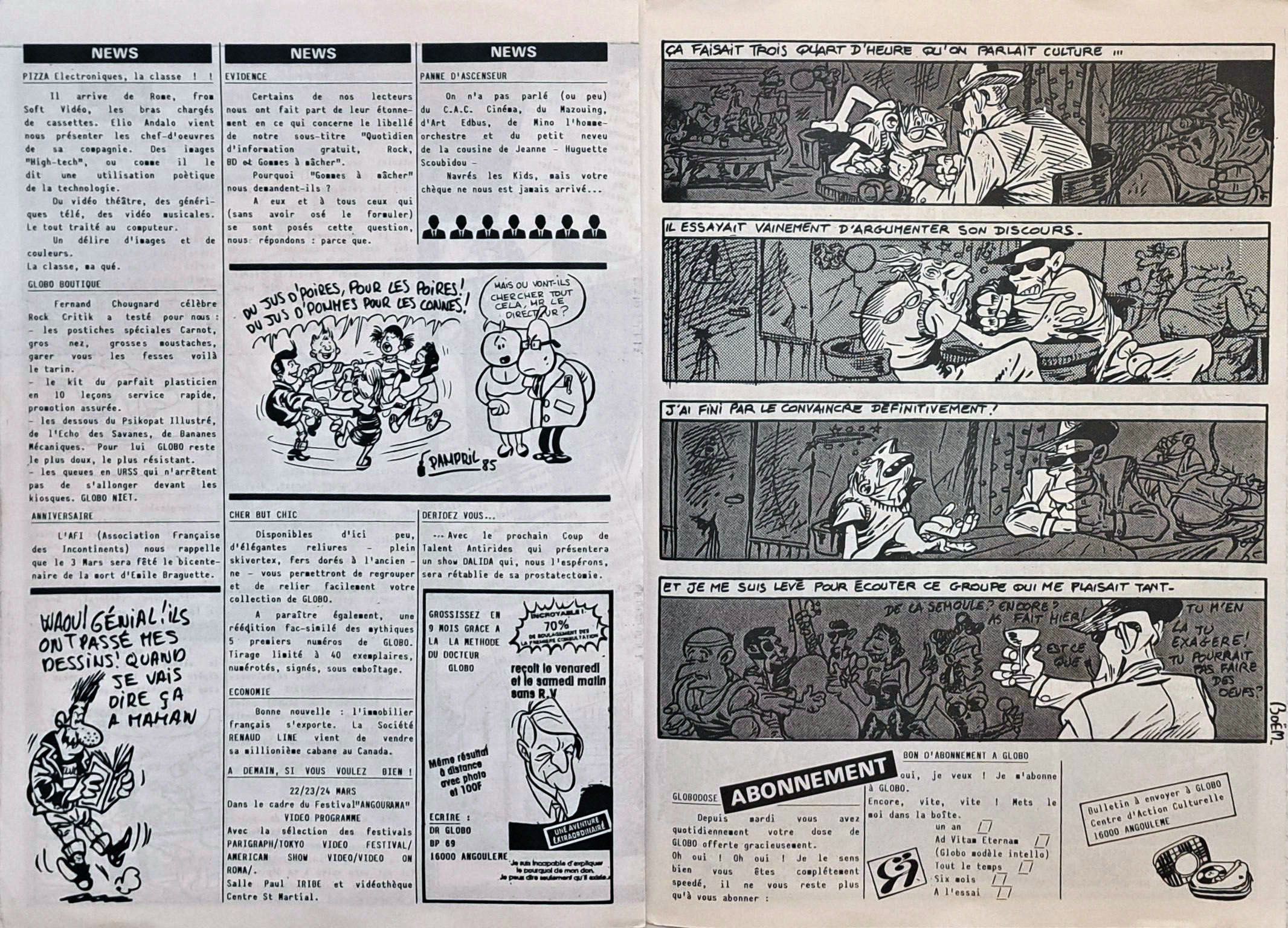 A4 10 pages → Offset ↪ FR ↪ 16 ↪ Angoulême Parution en mars 1985Globo n°5 Numerisation : Oui (150 dpi) Collection privée PLUS MOINS