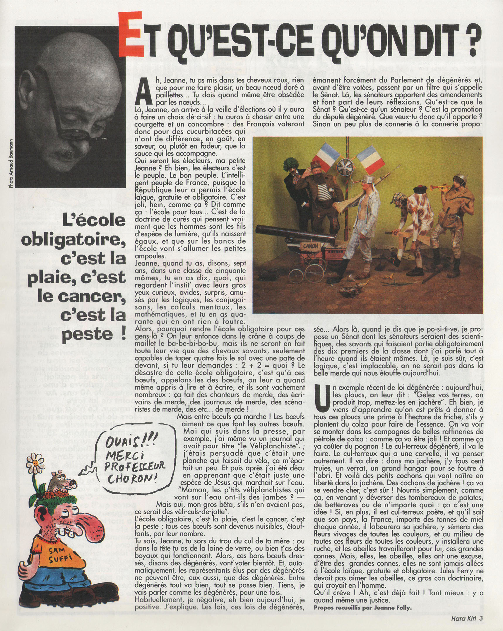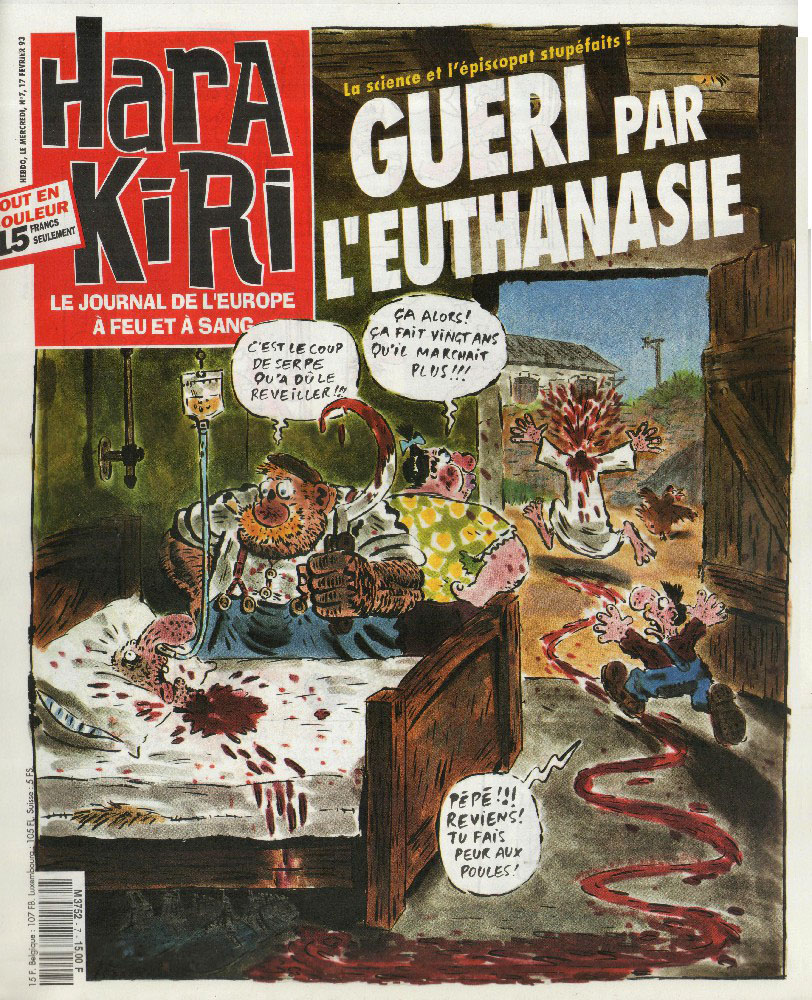 32 x 37 cm 16 pages → Offset ↪ FR Parution en fevrier 1993Hara Kiri Hebdo n°7 Numerisation : Oui (300 dpi) Collection privée PLUS MOINS