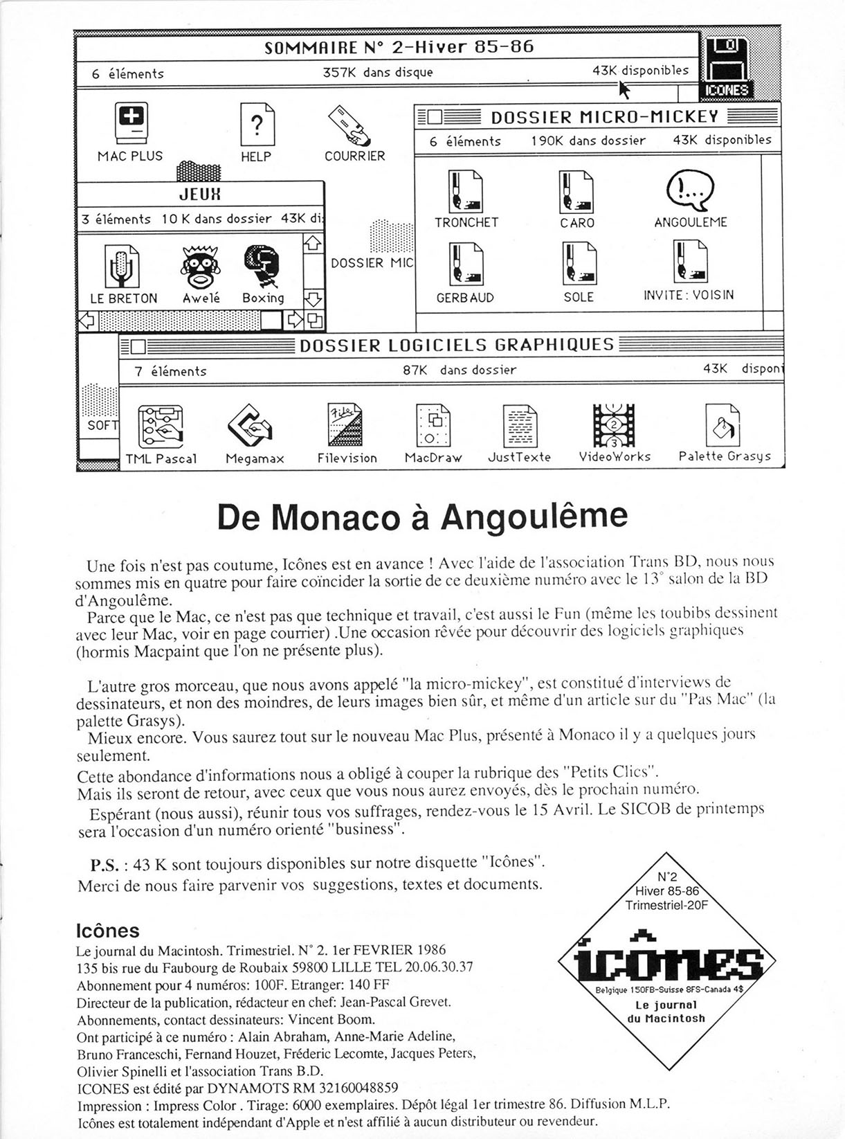 A4 32 pages → Offset ↪ FR ↪ 59 ↪ Lille Parution en fevrier 1986Icônes n°2 Numerisation : Oui (150 dpi) En ligne sur archive.org PLUS MOINS