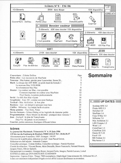 A4 36 pages → Offset ↪ FR ↪ 59 ↪ Lille Parution en juillet 1986Icônes n°4 Numerisation : Oui (150 dpi) En ligne sur archive.org PLUS MOINS