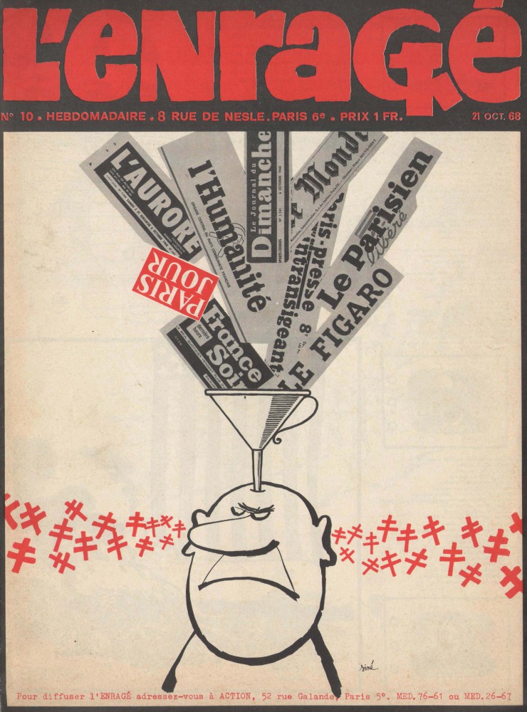 23 x 31 cm 8 pages → Offset ↪ FR ↪ Paris Parution en octobre 1968L'enragé n°10 Numerisation : Oui (150 dpi) Edition Jean-Jacques Pauvert En ligne sur archive.org PLUS MOINS