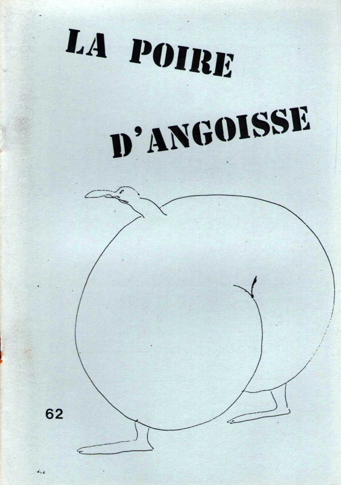 A5 → Photocopie NB ↪ FR ↪ 24 ↪ Boulazac Parution en novembre 1985La Poire D'Angoisse n°62 chez : Moulinier (Didier) Numerisation : Non En recherche PLUS MOINS