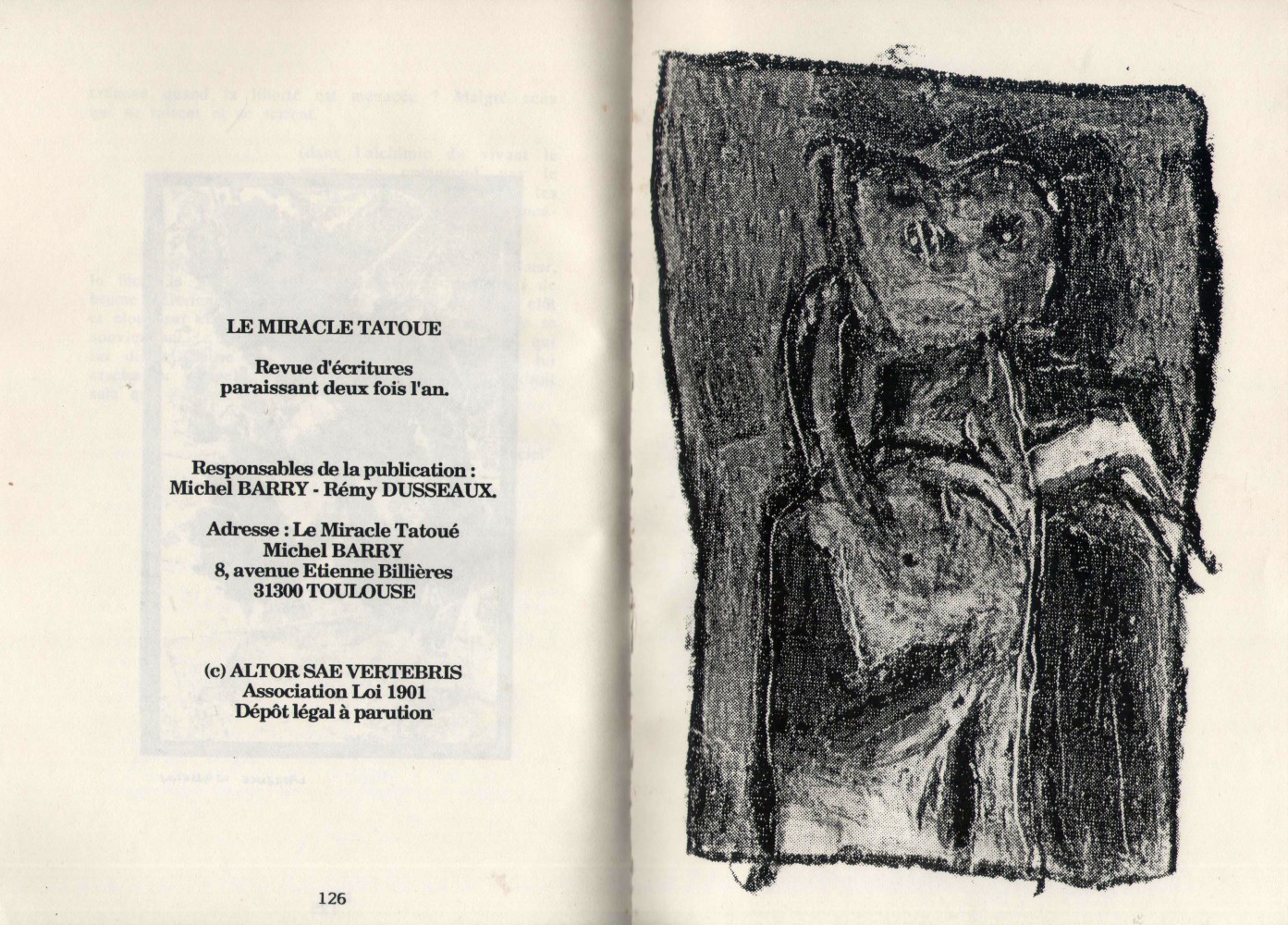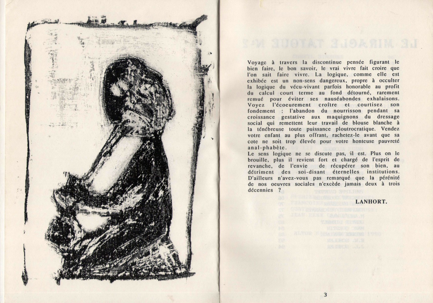 A5 128 pages → Offset ↪ FR ↪ 31 ↪ Toulouse Parution en 1990Le Miracle Tatoué n°2 Numerisation : Oui (300 dpi) Sans commentaire (pour le moment). PLUS MOINS