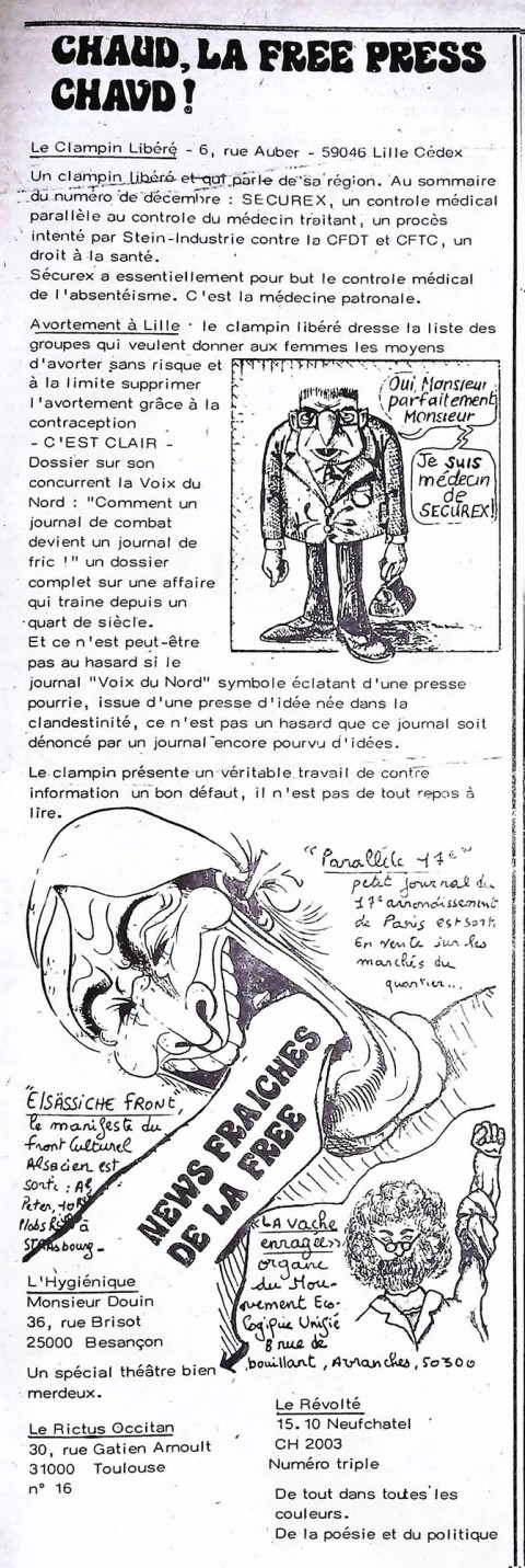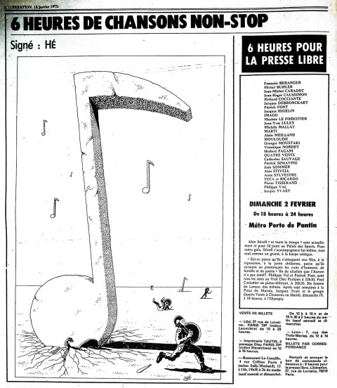29 x 41 cm 12 pages → Offset ↪ FR Parution en janvier 1975Libération n°335 chez : Libération Numerisation : Oui (150 dpi) Collection privée PLUS MOINS