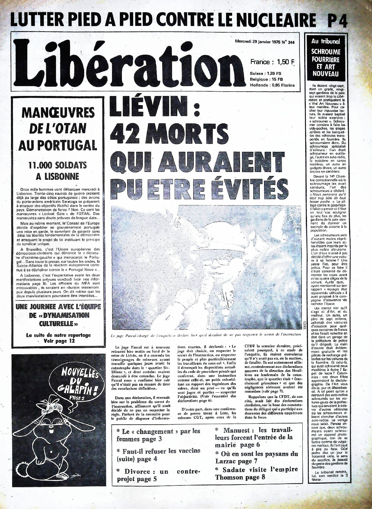 29 x 41 cm 12 pages → Offset ↪ FR Parution en janvier 1975Libération n°344 chez : Libération Numerisation : Oui (150 dpi) Collection privée PLUS MOINS