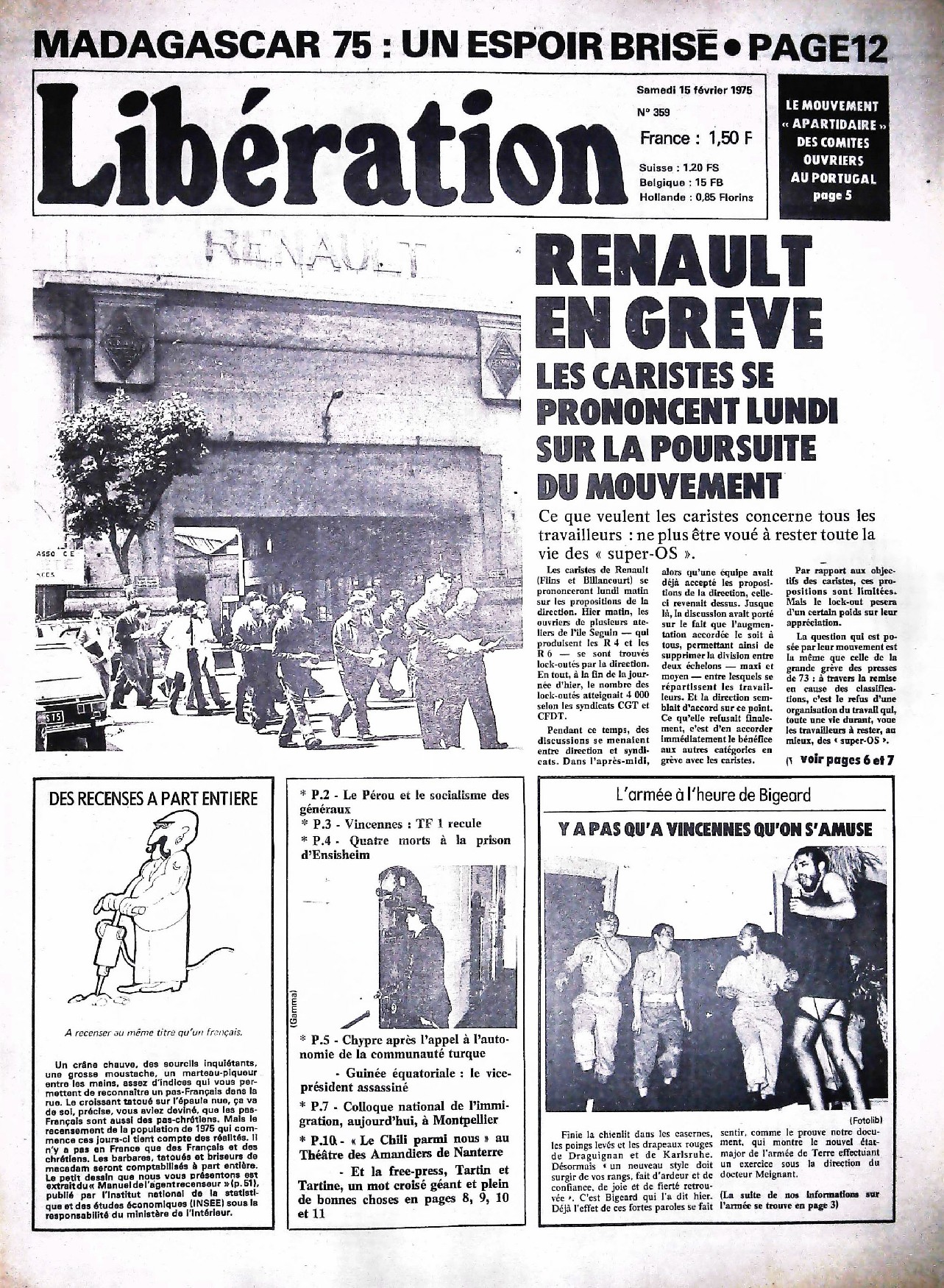 29 x 41 cm 12 pages → Offset ↪ FR Parution en fevrier 1975Libération n°359 chez : Libération Numerisation : Oui (150 dpi) Collection privée PLUS MOINS