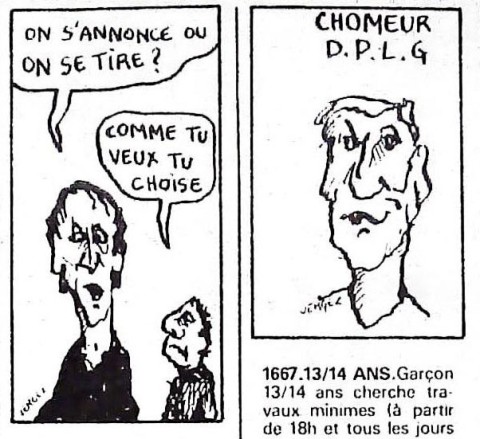 29 x 41 cm 12 pages → Offset ↪ FR Parution en fevrier 1975Libération n°361 chez : Libération Numerisation : Oui (150 dpi) Collection privée PLUS MOINS