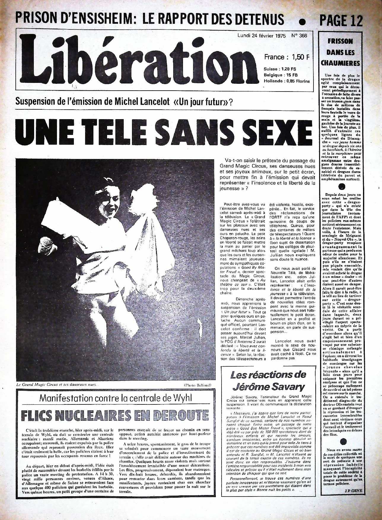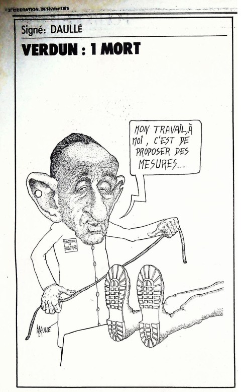 29 x 41 cm 12 pages → Offset ↪ FR Parution en fevrier 1975Libération n°366 chez : Libération Numerisation : Oui (150 dpi) Collection privée PLUS MOINS
