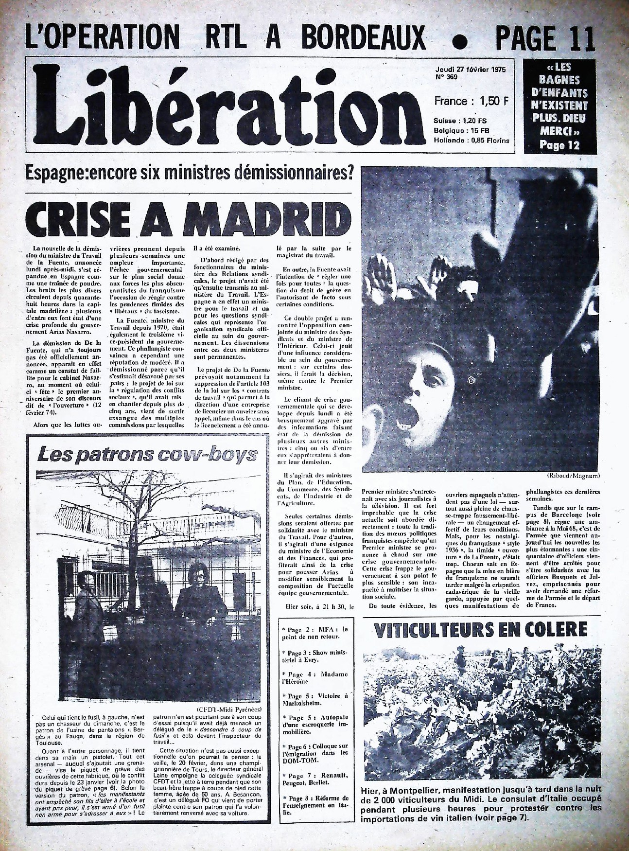 29 x 41 cm 12 pages → Offset ↪ FR Parution en fevrier 1975Libération n°369 chez : Libération Numerisation : Oui (150 dpi) Collection privée PLUS MOINS
