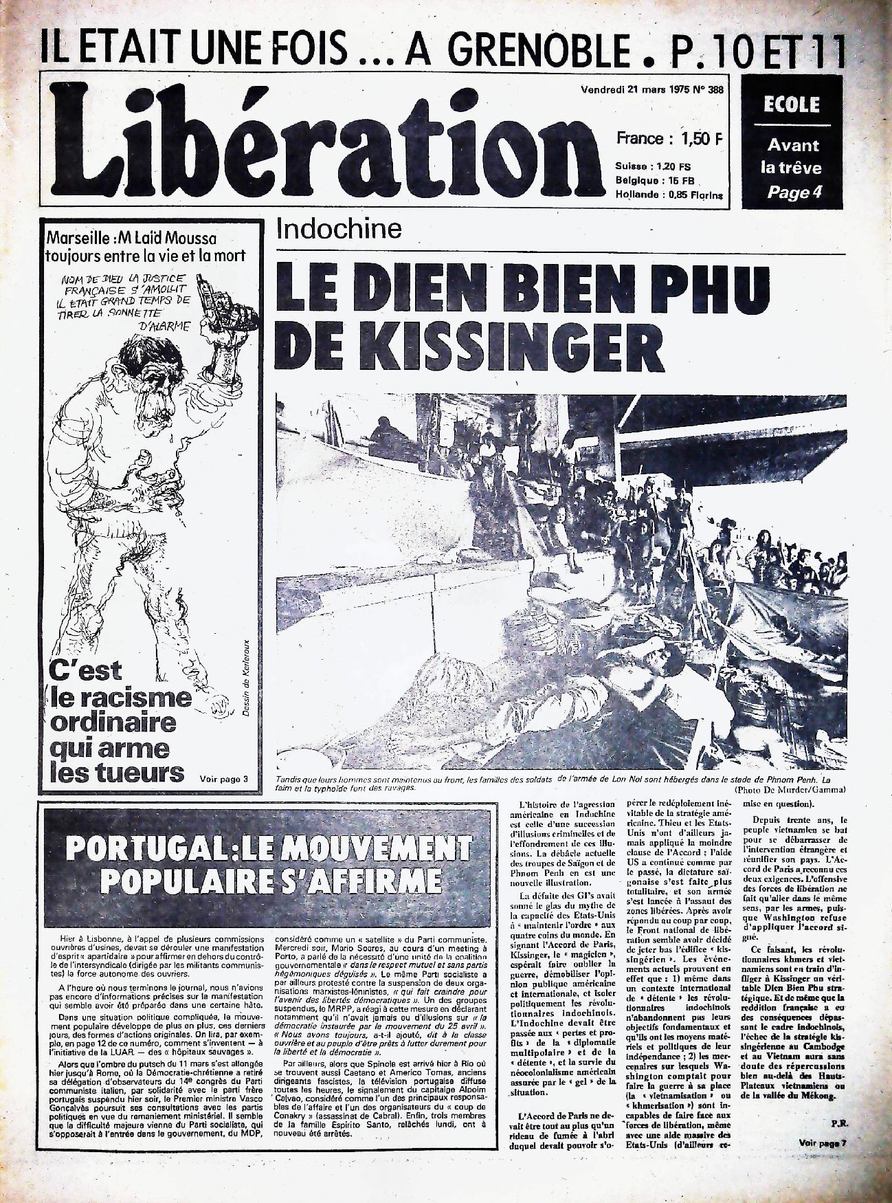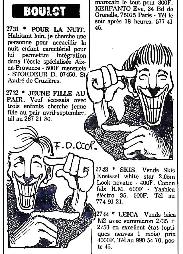 29 x 41 cm 12 pages → Offset ↪ FR Parution en mars 1975Libération n°388 chez : Libération Numerisation : Oui (150 dpi) Collection privée PLUS MOINS