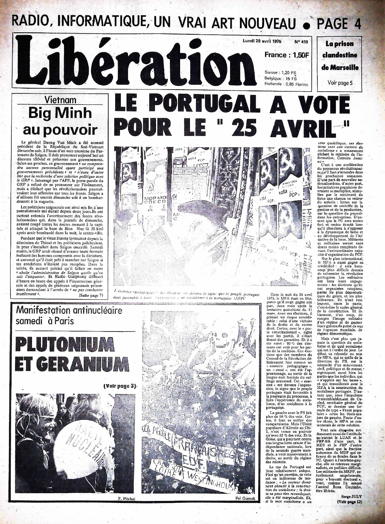 29 x 41 cm 12 pages → Offset ↪ FR Parution en avril 1975Libération n°419 chez : Libération Numerisation : Oui (150 dpi) Collection privée PLUS MOINS