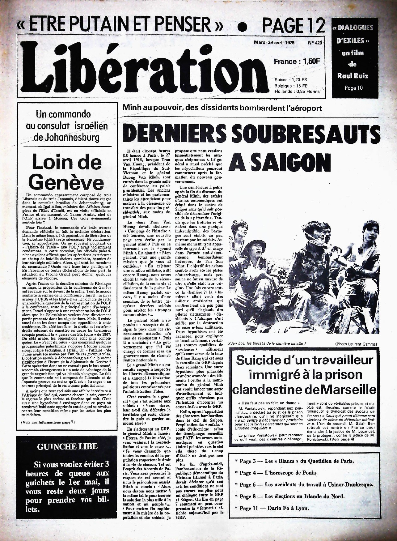29 x 41 cm 12 pages → Offset ↪ FR Parution en avril 1975Libération n°420 chez : Libération Numerisation : Oui (150 dpi) Collection privée PLUS MOINS