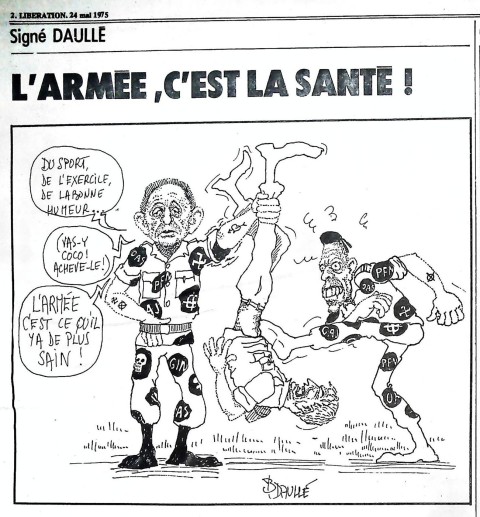 29 x 41 cm 12 pages → Offset ↪ FR Parution en mai 1975Libération n°439 chez : Libération Numerisation : Oui (150 dpi) Collection privée PLUS MOINS