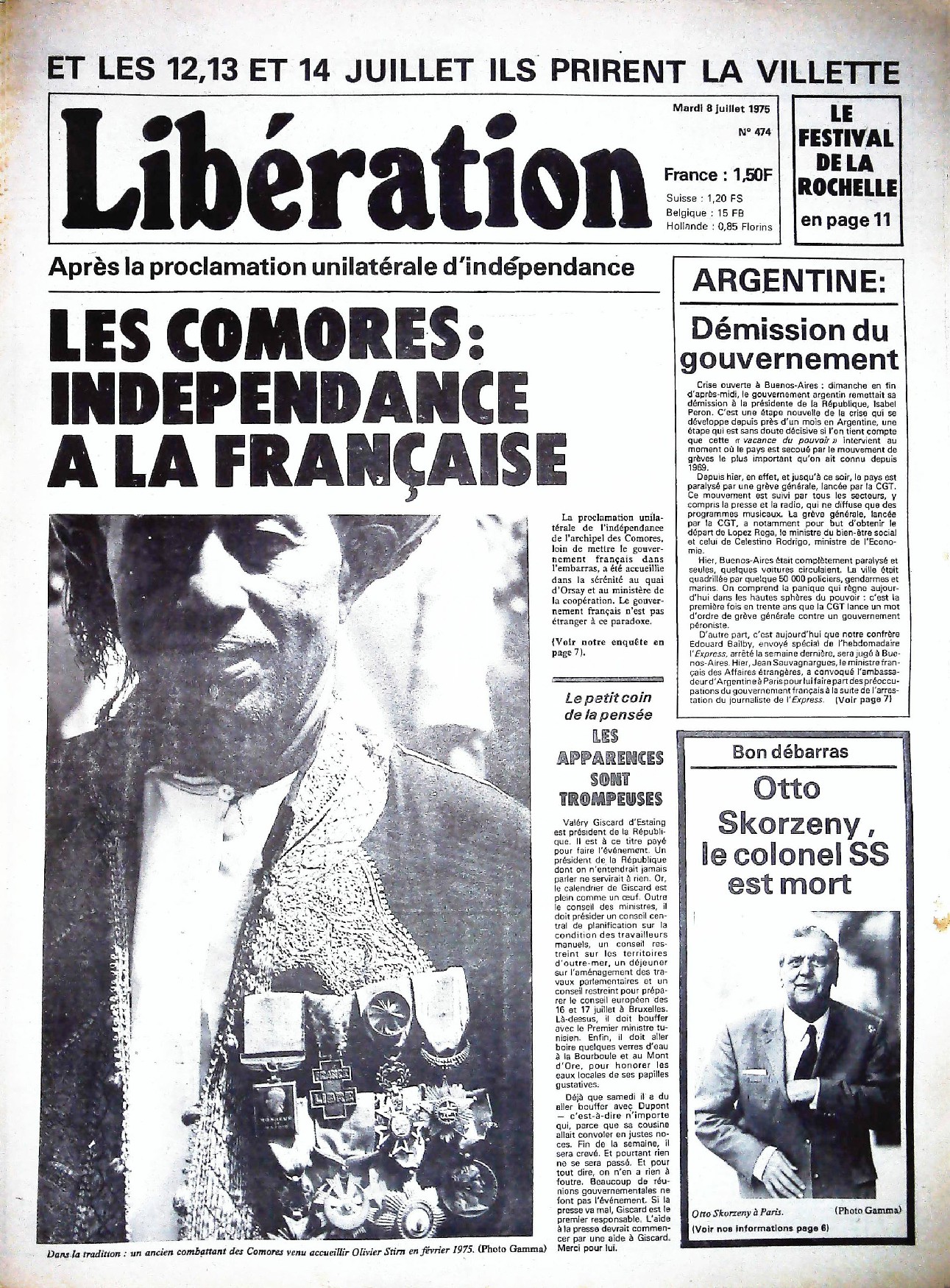 29 x 41 cm 12 pages → Offset ↪ FR Parution en juillet 1975Libération n°474 chez : Libération Numerisation : Oui (150 dpi) Collection privée PLUS MOINS