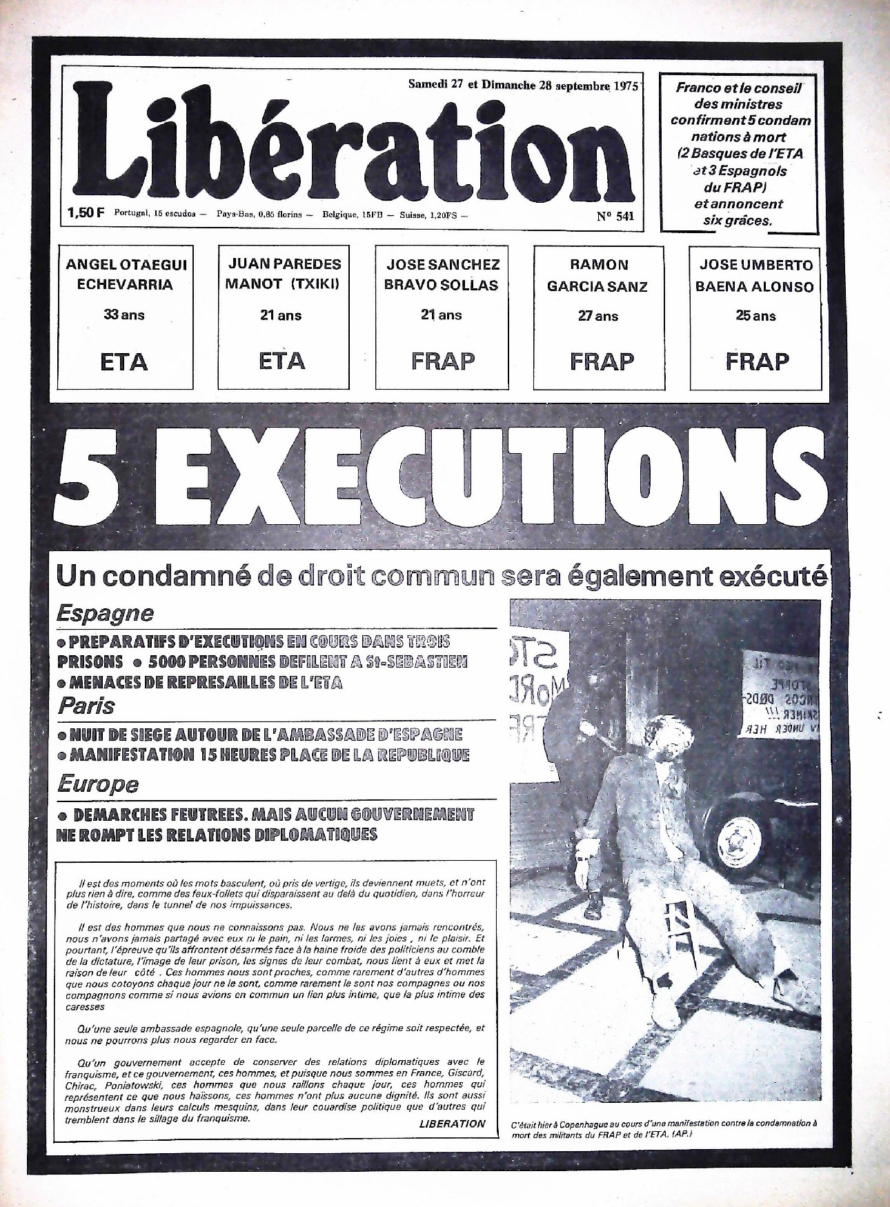 29 x 41 cm 12 pages → Offset ↪ FR Parution en septembre 1975Libération n°541 chez : Libération Numerisation : Oui (150 dpi) Collection privée PLUS MOINS
