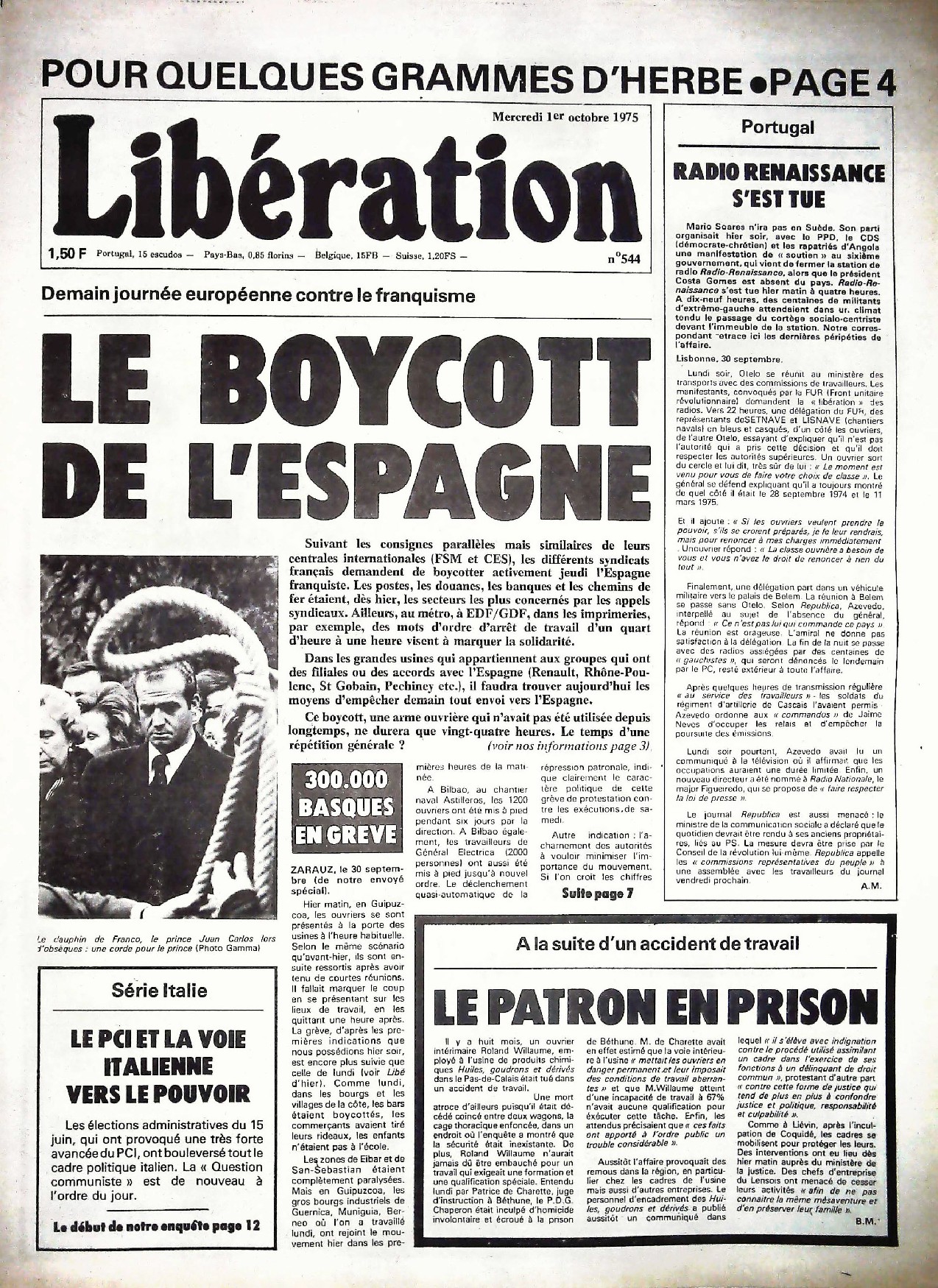 29 x 41 cm 12 pages → Offset ↪ FR Parution en octobre 1975Libération n°544 chez : Libération Numerisation : Oui (150 dpi) Collection privée PLUS MOINS