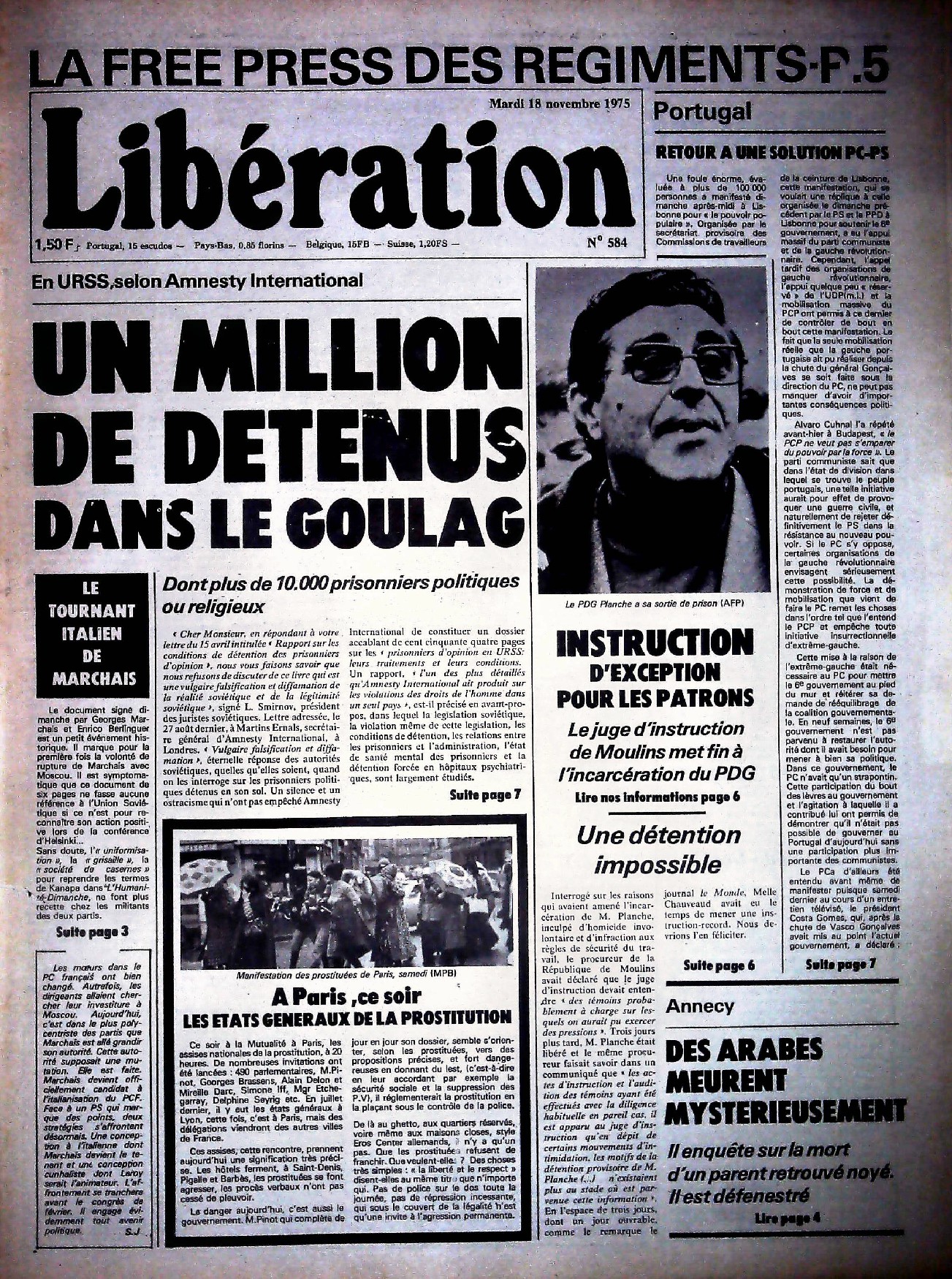 29 x 41 cm 12 pages → Offset ↪ FR Parution en novembre 1975Libération n°584 chez : Libération Numerisation : Oui (150 dpi) Collection privée PLUS MOINS
