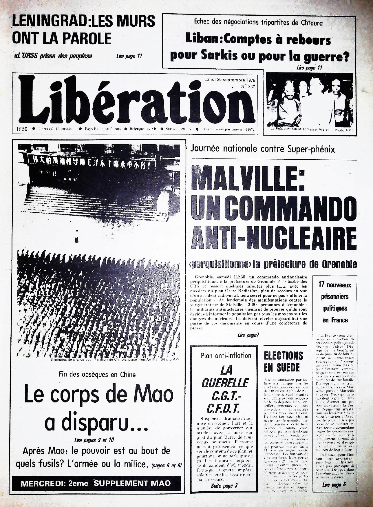 29 x 41 cm 16 pages → Offset ↪ FR Parution en septembre 1976Libération n°837 chez : Libération Numerisation : Oui (150 dpi) Collection privée PLUS MOINS