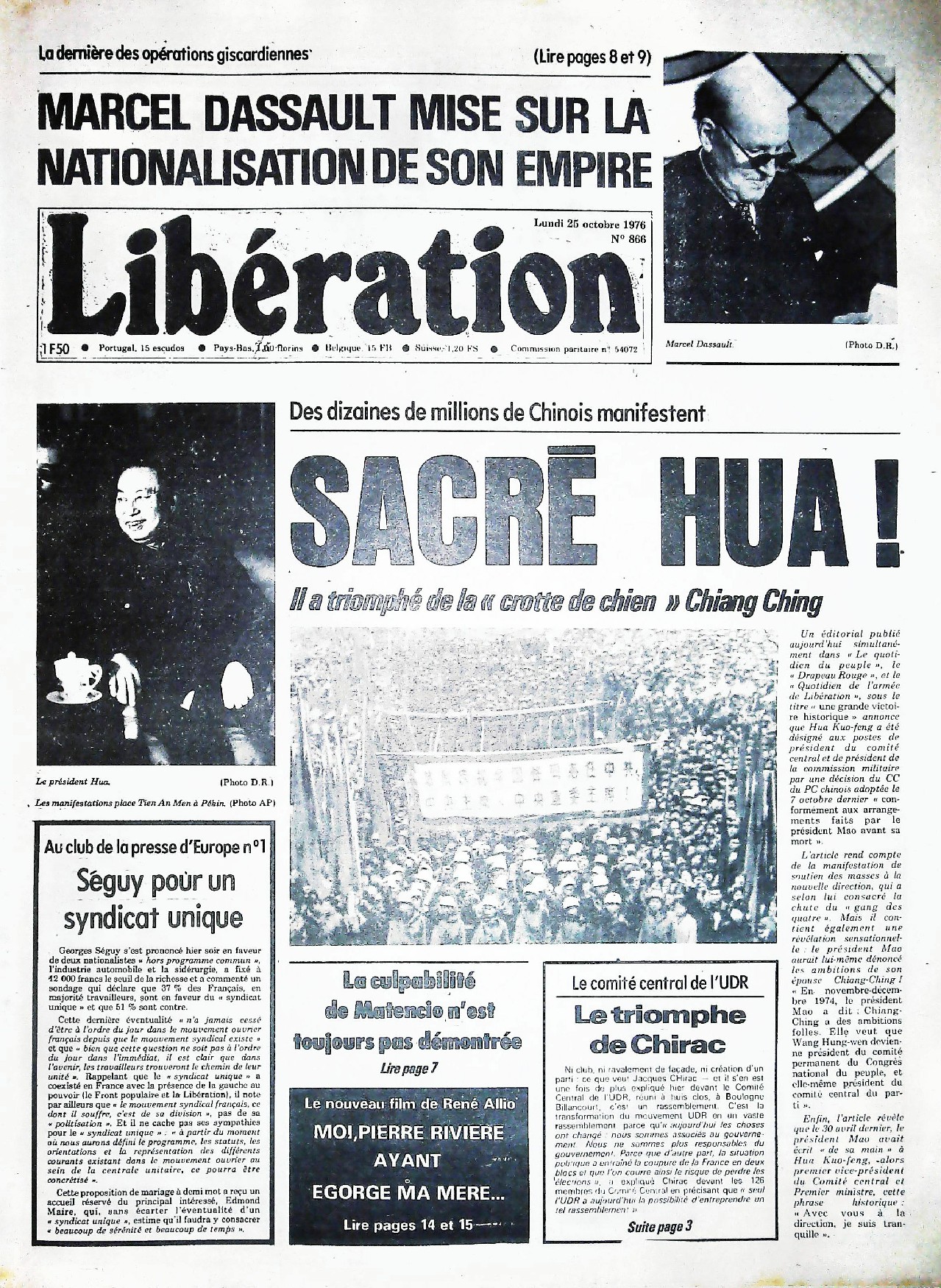 29 x 41 cm 16 pages → Offset ↪ FR Parution en octobre 1976Libération n°866 chez : Libération Numerisation : Oui (150 dpi) Collection privée PLUS MOINS