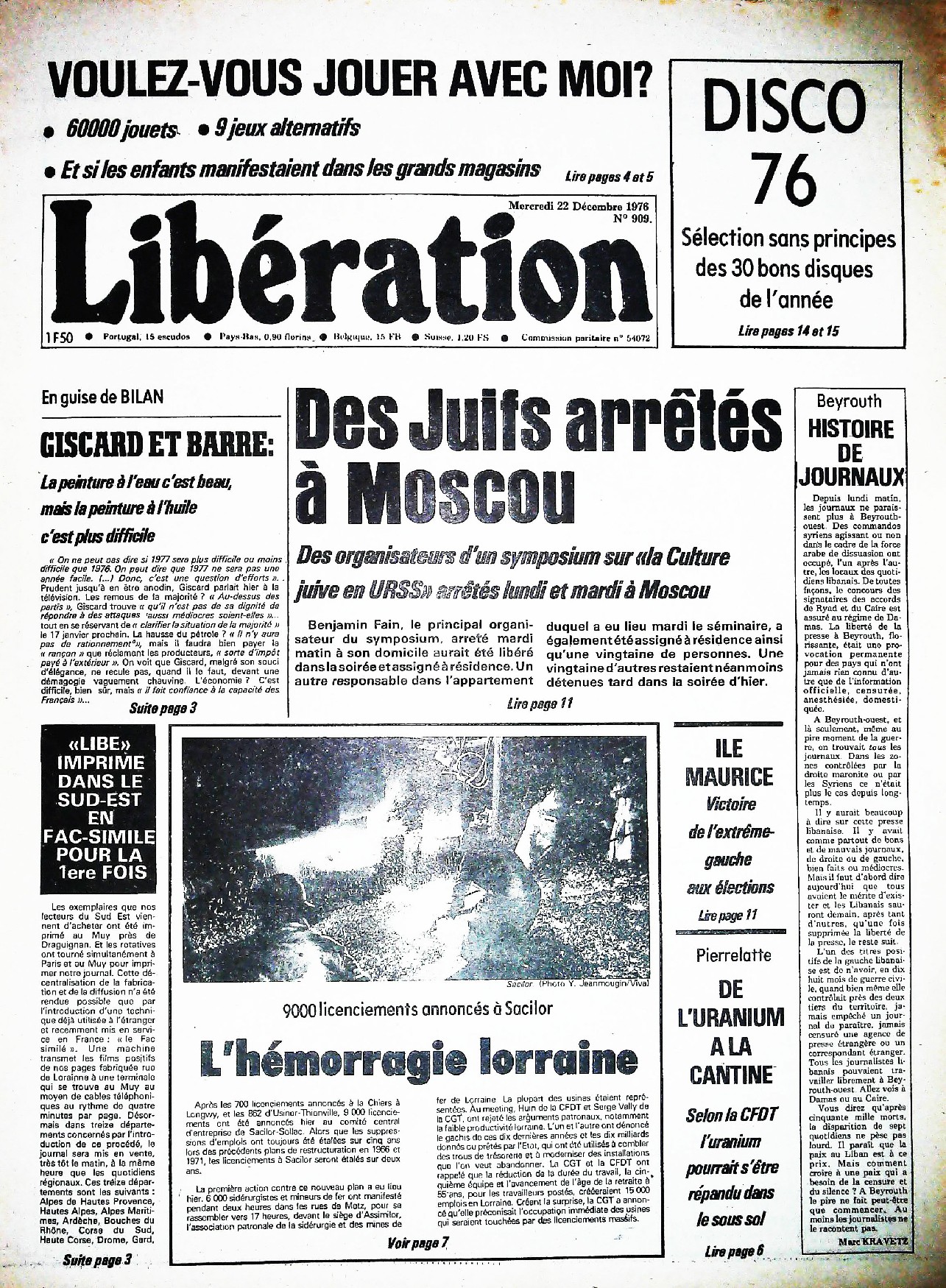 29 x 41 cm 16 pages → Offset ↪ FR Parution en decembre 1976Libération n°909 chez : Libération Numerisation : Oui (150 dpi) Collection privée PLUS MOINS