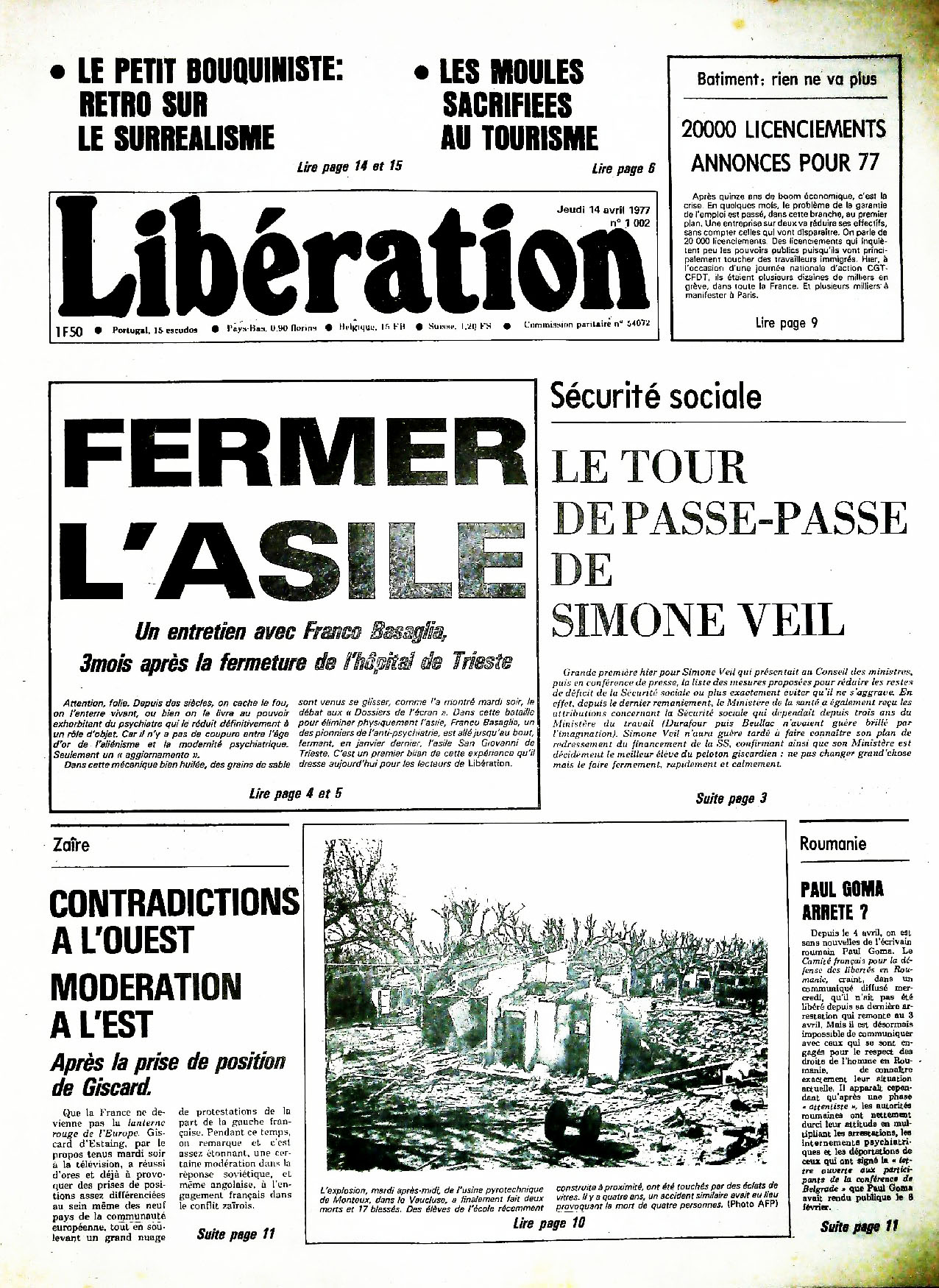 29 x 41 cm 16 pages → Offset ↪ FR Parution en avril 1977Libération n°1002 chez : Libération Numerisation : Oui (150 dpi) Collection privée PLUS MOINS