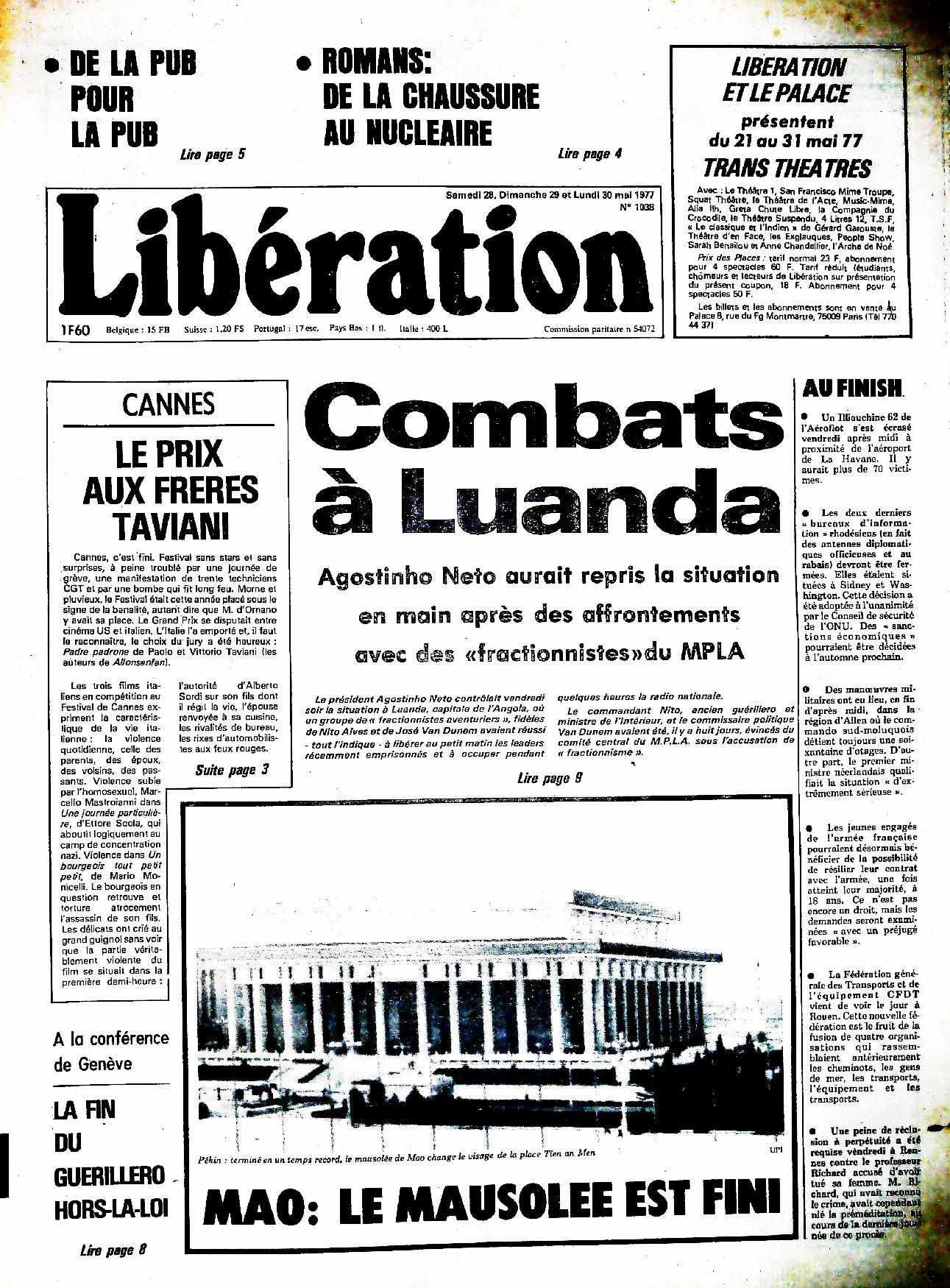 29 x 41 cm 16 pages → Offset ↪ FR Parution en mai 1977Libération n°1038 chez : Libération Numerisation : Oui (150 dpi) Collection privée PLUS MOINS
