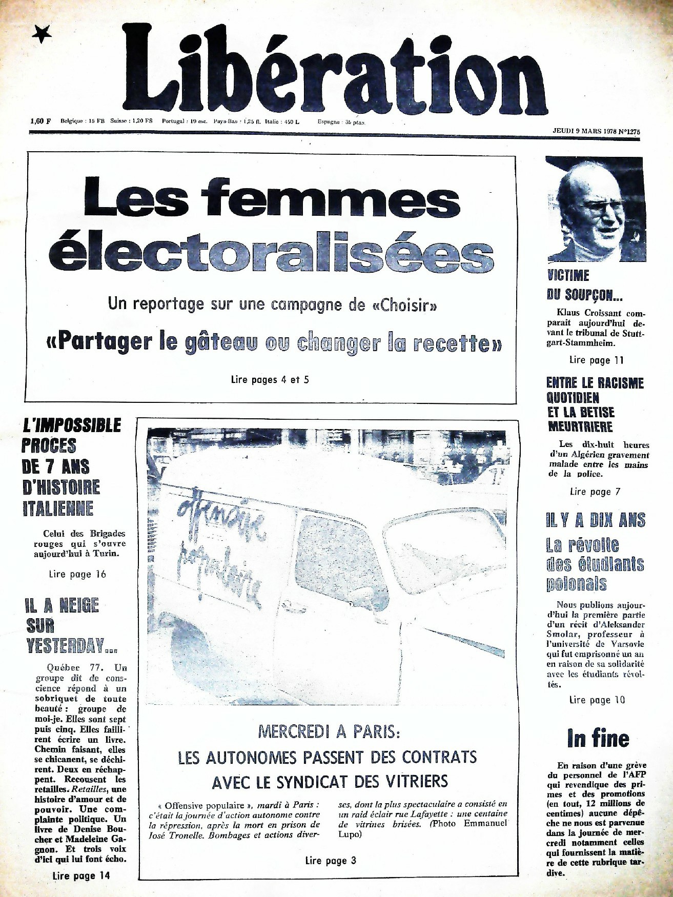29 x 41 cm 16 pages → Offset ↪ FR Parution en mars 1978Libération n°1275 chez : Libération Numerisation : Oui (150 dpi) Collection privée PLUS MOINS