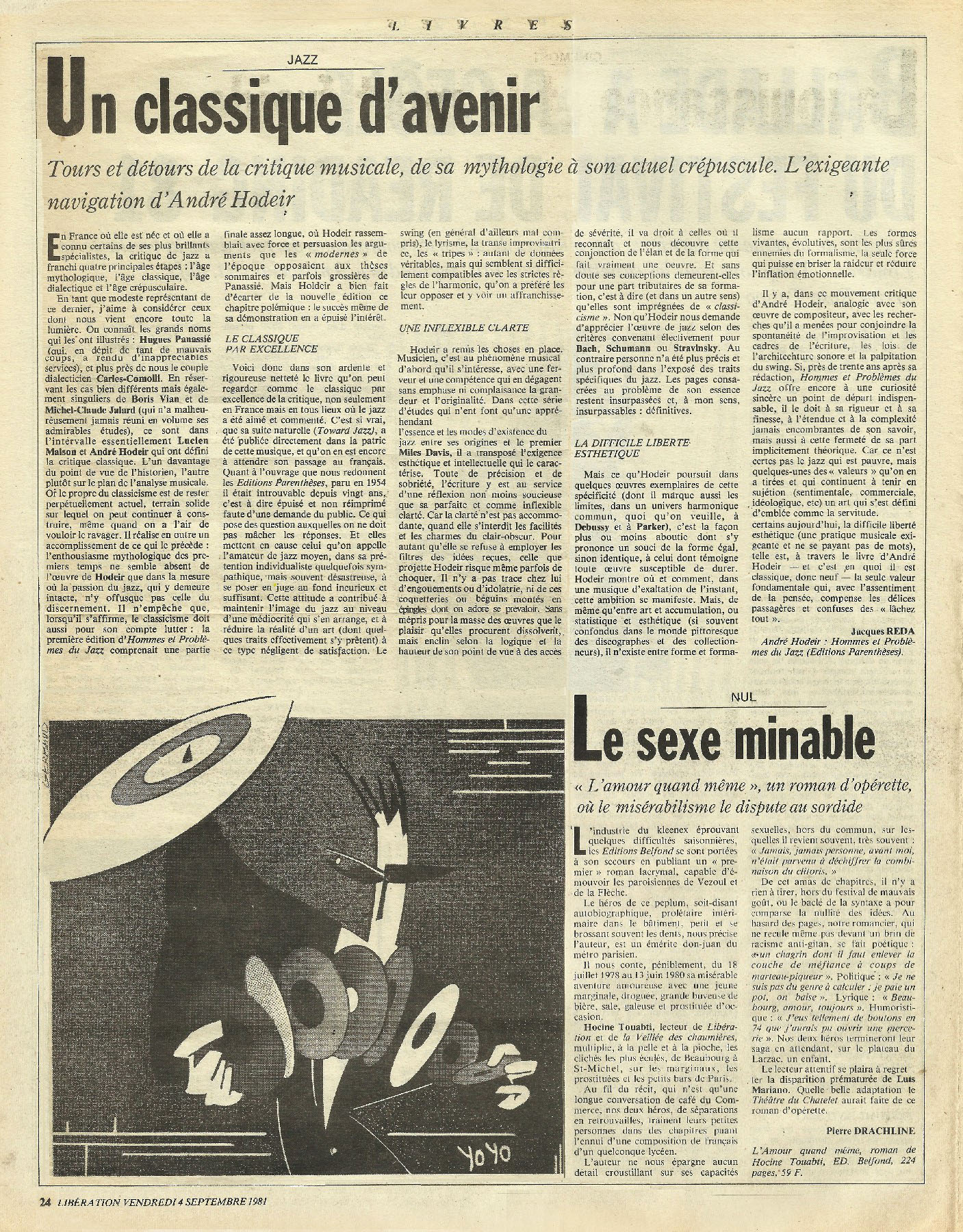 28 x 36 cm 2 pages → Offset ↪ FR Parution en septembre 1981Libération (Gerbaud) par : Gerbaud (Philippe) chez : Libération Numerisation : Oui (300 dpi) Collection privée PLUS MOINS