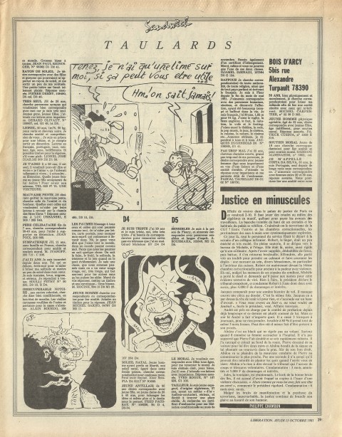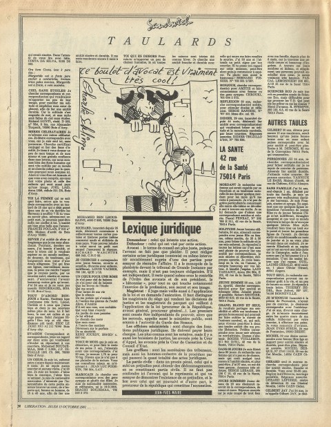 28 x 36 cm 3 pages → Offset ↪ FR Parution en octobre 1981Libération (Schlingo) par : Schlingo (Charlie) chez : Libération Numerisation : Oui (300 dpi) Collection privée PLUS MOINS